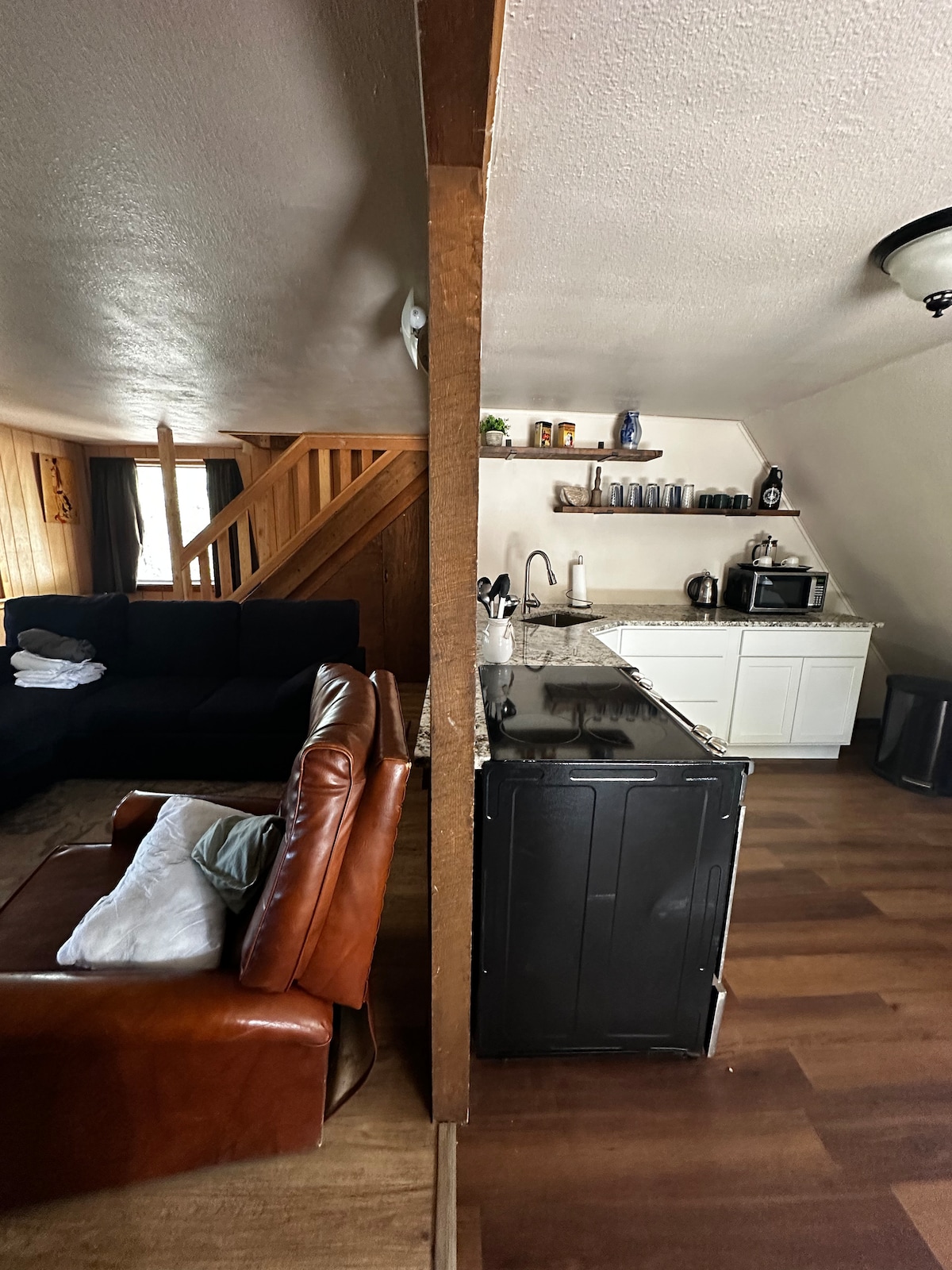 Step back into a simpler place and time! Our cabin is located in a quiet neighborhood on a quarter acre lot. Remodeled for comfort and enjoyment, but still has that rustic charm to give you the perfect mountain getaway! Get a great night’s sleep on our King Serta Perfect Sleeper. While additional guests choose from the XL memory foam twin or sofa bed. Our kitchen is fully stocked for you to cook your own meals, and we have plenty of games to keep you busy!