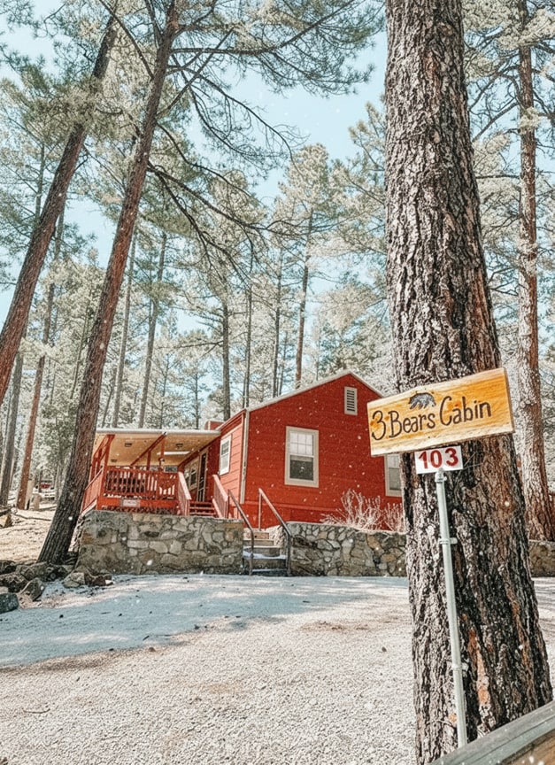 This cozy cabin is perched calmly among the tall pines and is perfect to accommodate up to 4 guests. Featuring one bedroom, one bathroom, living room, dining area, full kitchen, desk, new hot tub, and deck; it is ideal for those that want to unwind and enjoy what Ruidoso has to offer. It is situated in a quiet neighborhood that is a brief 10-minute stroll down the hill to Midtown, the village center for shopping and restaurants. The cabin is 37 min drive to Ski Apache, 10 min drive to casinos.