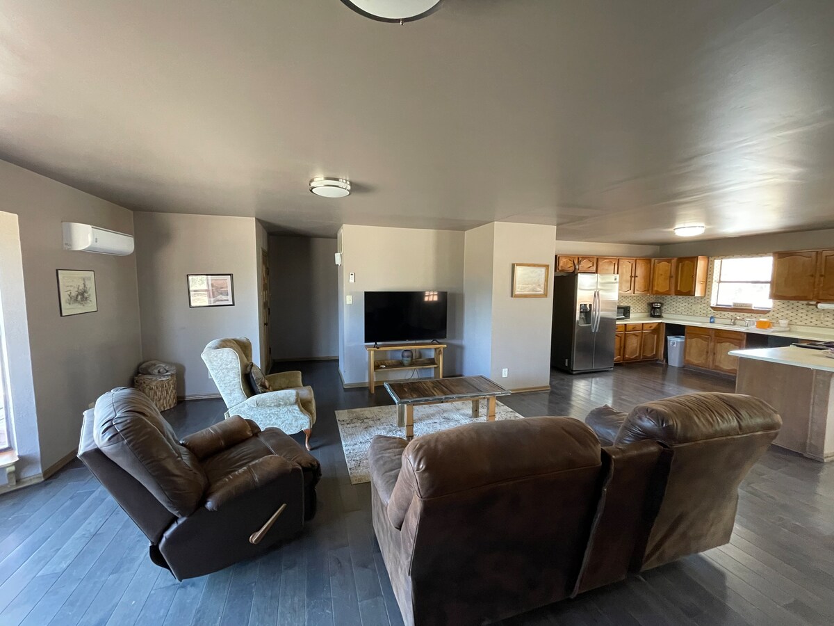 Deep in the mountains of Lincoln Nat'l Forest, recharge your batteries, connect with friends & family with all the comforts of home, stunning views, amazing night skies, privacy, internet . Experienced hosts committed to your stellar getaway. It's SO spacious - nearly twice the size of any rental in our area. Come find out why we're so popular. Daily base rate includes 2 guests. Add $50 / each added guest. Input correct # of people in your group for exact price. Dog fee - $50 per dog per stay.