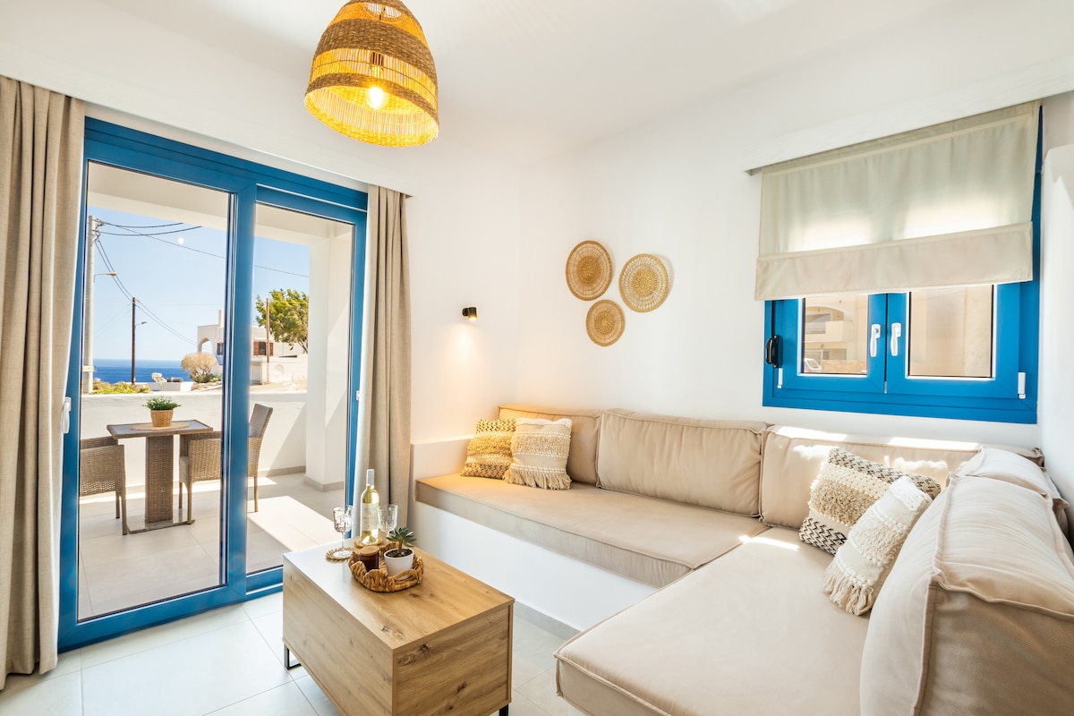 We invite you to experience all the magic of Karpathos in our sophisticated deluxe studios, which offer you all the modern comforts, making your stay on this wonderful island truly unforgettable! They offer a king size bed, a beautiful living room, an equipped kitchen, a private bathroom with two showers and a spacious furnished balcony that has a stunning view of the pool, the sea and the sunrise! Located in the area of Amoopi, in Kastelia.