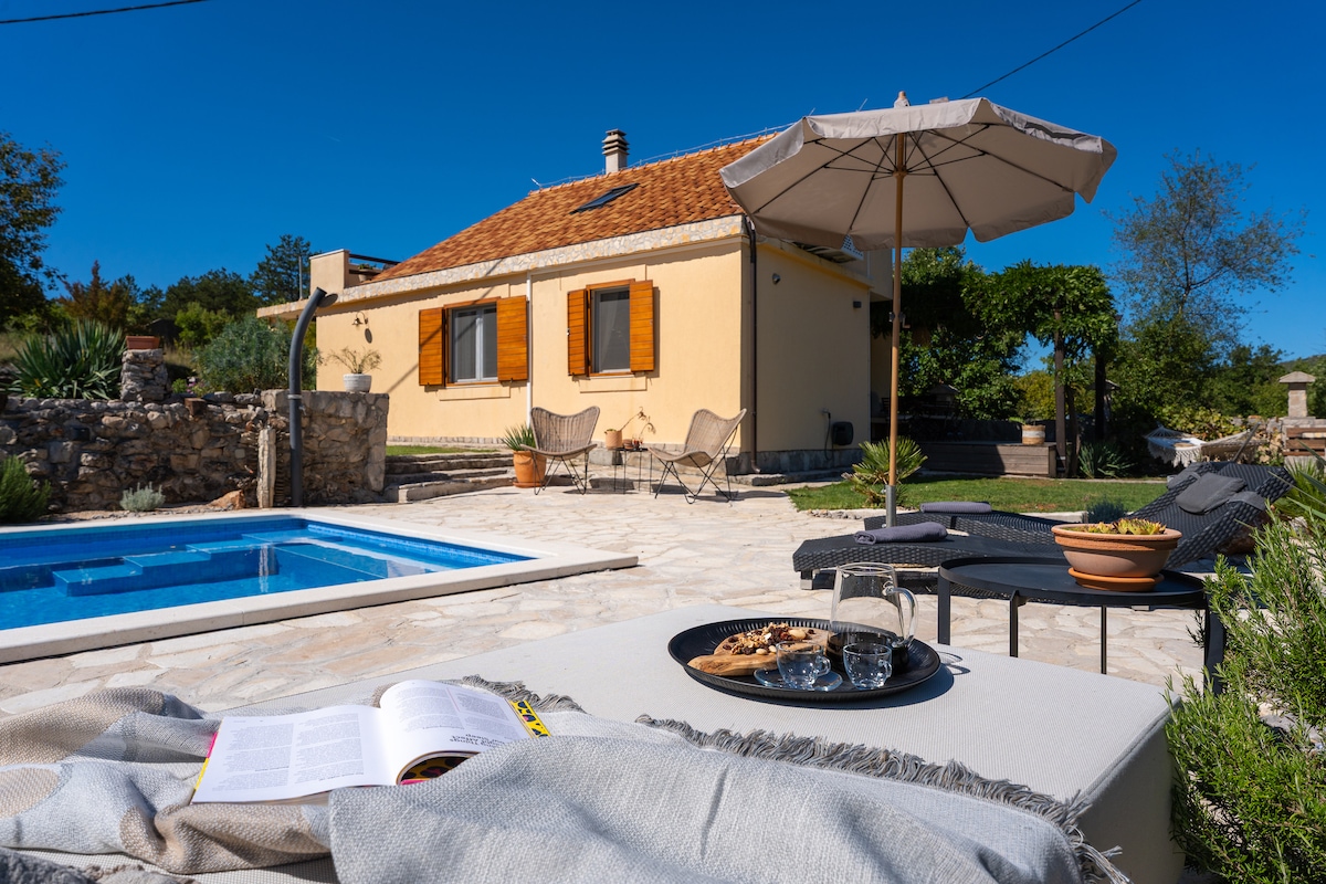 ENTIRE VILLA ONLY FOR YOU ! ROMANTIC VILLA located in green,quiet place Dugopolje Swim in HEATED POOL,relax in HOT TUB Jacuzzi Lay in the sun,listen to Fountain sound BBQ under arbor Trampoline,Table Soccer,Darts,5 Bikes ALL FOR YOU ! Great thing-all is near: Exit A1 highway-3km BEACH named ŽNJAN-15km City SPLIT-16km SPLIT Ferry port to Visit Islands BRAČ,HVAR,VIS-19km ANCIENT SALONA-9km FORTRESS KLIS(Game of Thrones)-6km Perfectly close,but far enough for your peace & privacy Enjoy your holiday