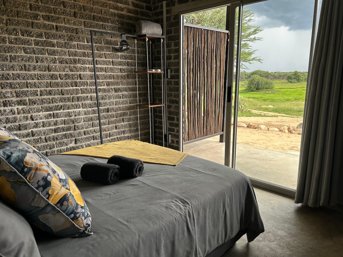 Escape to the tranquility of Namibia’s Thornbush Savanna at one of our cozy countryside apartments, just 15 km outside of Otjiwarongo. Perfect for couples or small families, this charming 1-bedroom unit comfortably accommodates 2 adults and 2 children. The apartment features a private bathroom, a convenient kitchenette, and a relaxed, homey atmosphere that invites you to unwind.