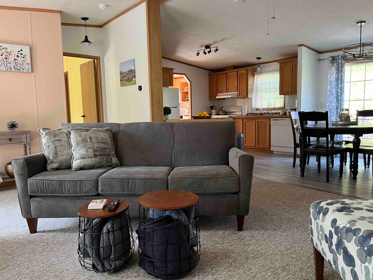 PRE APPROVAL NEEDED FOR PETS !Only ADA certified pets are considered a service pet. Please no early check in. Stunningly beautiful new construction home with state of the art kitchen fully stocked. High end appliances, double oven, gas stove, Cathedral ceilings, electric double recliner, gas fireplace, smart T.V.s in every room with satellite. Each room has own thermostat. Luxury linens and towels locally sourced amenities. Master bedroom has walk out deck .There are 2 fenced in yards.