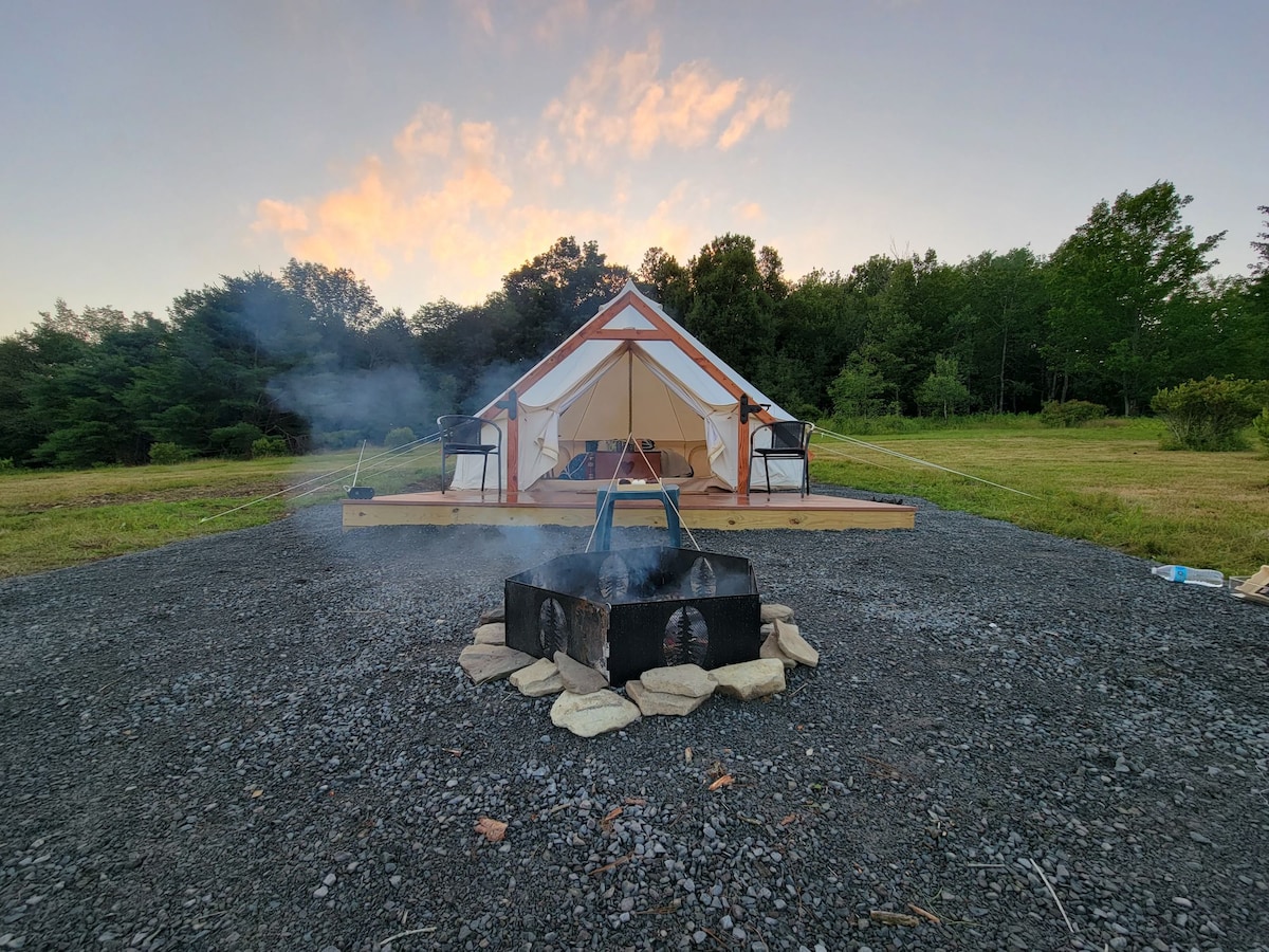 Nestled on 40 acres of mountain land in Upstate NY, our eco-friendly glamping site offers a retreat from the hustle and bustle. Surrounded by lush blueberries. Unwind in style with solar-powered glamping accommodations, featuring a luxurious soaking tub. Take a leisurely stroll to the nearby creek, and enjoy the tranquility of our forest surroundings. Start your day with a complimentary breakfast to fuel your adventures.