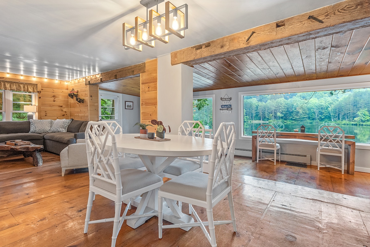 Eagle River is a charming waterfront home located between Cooperstown & Oneonta. The water views are incredible! Enjoy free use of kayaks and stand up paddle boards at the kayak shop next door. The home has been recently updated with a new kitchen, bathroom, sunroom, deck, mattresses and linens. It has an open floor plan with 3 smart T.V.s & comfy leather couch. The owner operates the kayak shop next door and is readily available if need be; free kayak lessons are included also.