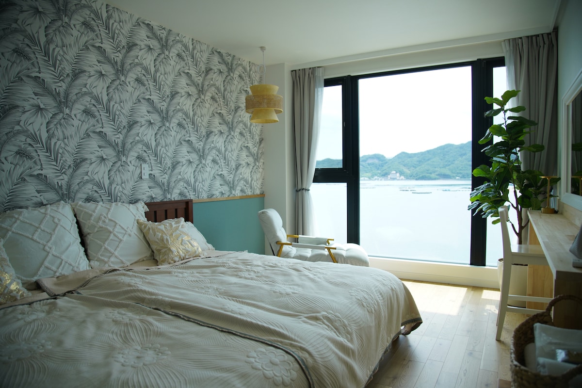 【オーシャンビュー バルコニー、屋外スペース付き】 青い空、青い海、心地良い風、満天の星空、煌めく朝日、緑の香り、鳥のさえずり♪ 窓、バルコニーからは海の青と山の緑のコントラストが美しく見え、まるで淡路島の山の中にある隠れ家みたい♪ ホスト夫妻が1年半かけて古い家をフルリノベーションした、手作り感いっぱいの、真っ白く明るいお部屋です。 庭にはハーブが元気に育っていて、アロマの精油や、ホスト夫妻が自ら手掛ける淡路島の椿油も自由にお使いいただけるようにご用意しています。 是非手にとってお使いくださいね♪ アロマの優しい香りの中、海を見ながら静かな環境でゆったりとした癒しの時間をお過ごしください。 リラックス出来る海岸まで家から10分♪ ★表示料金について★ カレンダーの表示料金は一棟貸切の料金ではありません。 必ず宿泊人数の入力をして下さい。 例:大人2名 小人1名 ★子供料金の設定★ 6歳未満は無料 お子様連れでご予約されたい場合は個別対応となりますので、お問い合わせ下さい。 ★神戸から車で約40分★ 女子旅、一人旅、カップル、友達同士、ファミリーに最適なお部屋です。