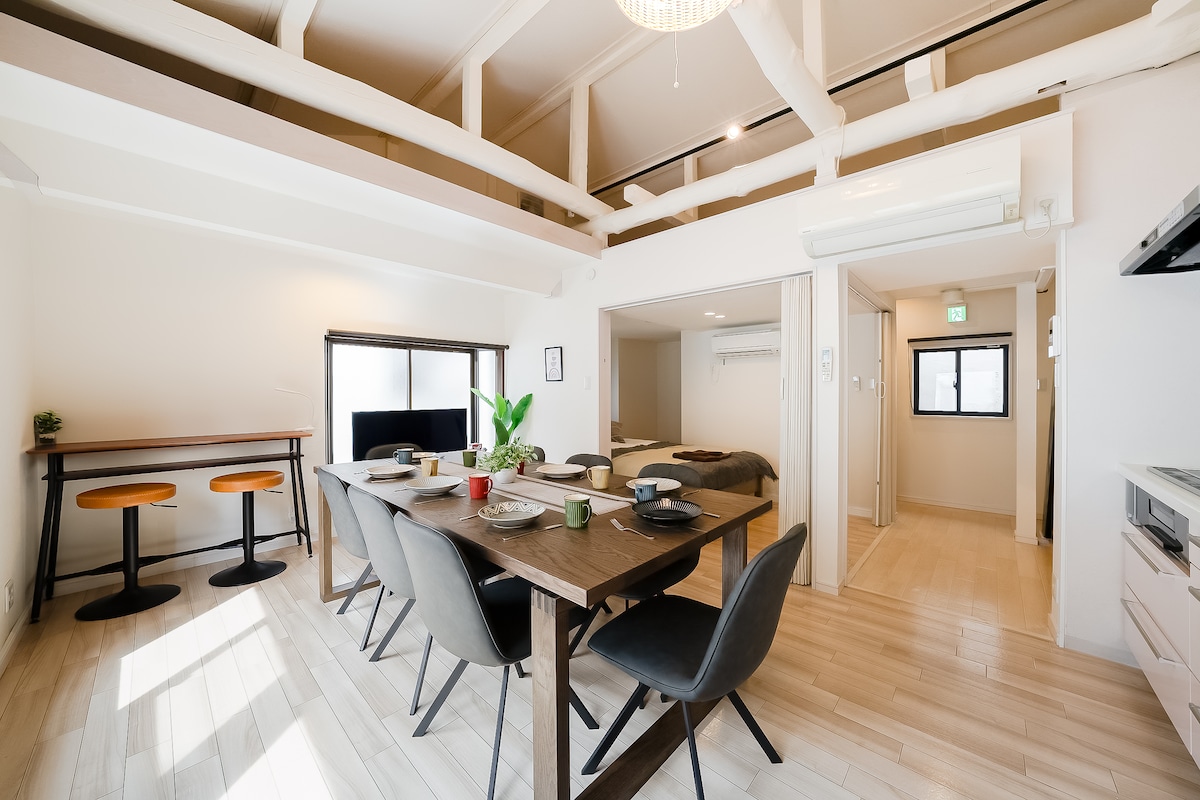 早稲田駅歩く5分、早稲田大学近隣。2024年新リフォーム。最大人数2-6名。家電完備。110㎡広さ。