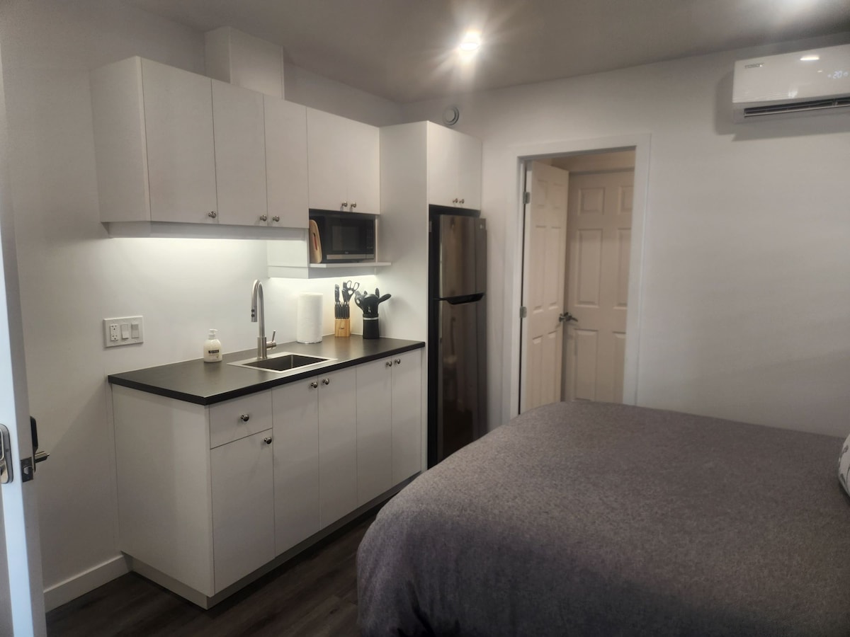 Private Studio, with no direct interaction with the hosts. About 15 minutes from Gatineau and 20 minutes from Ottawa by car. For an additional fee (and subject to availability), you can access the spa, sauna, and cold plunge pool. A lunchbox breakfast is included. Perfect for workers or tourists. We have 2 dogs and a cat (they do not have access to the studio). The studio is independent, yet attached to the house, and we ask visitors to maintain an appropriate noise level during their stay.