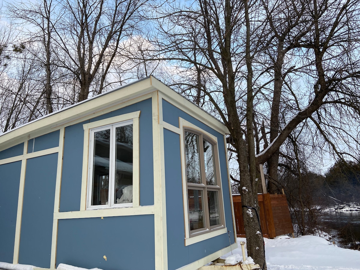 The perfect get away on the Mississippi River. Just five minutes to Carleton Place and 10 minutes to Almonte. Brand new guest house. The size of a typical large hotel room and includes full kitchen, tiled shower, queen bed and incredible views. Enjoy a bonfire. Check out the swans. You will even find the food basics in your fridge when you arrive...coffee, tea, milk, bagels and cold drinks as part of making sure you will have an enjoyable stay.