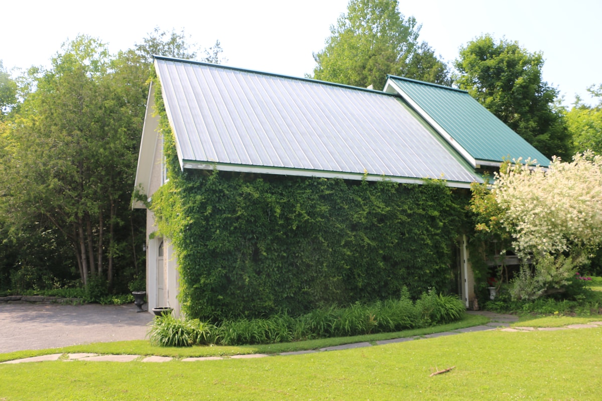 Note: discounts for two nights +! Tree bathing has never been this cozy! The coach house is a luxurious studio apartment (above our garage) in quiet and secluded rural setting. 10 minutes to Almonte or Carp, and 15 from Kanata. Fully furnished, with all utilities including parking, wifi, dishwasher and laundry. Sleeps 4: one full bed and one pull-out queen. The perfect spot for a weekend getaway, or to get some work done, while enjoying the peace of the woodlands, bird song, and our gardens.