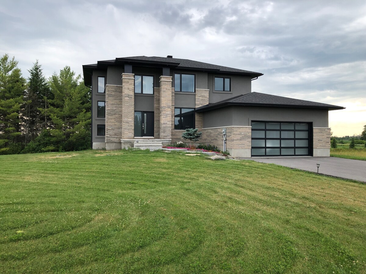 Comfort, luxury, work-friendly home, for a perfect family, couple's romantic getaway for an ideal business traveler in Ottawa. Total of 5 bedrooms, 4 bathrooms, 3 living rooms, a private Office, & private 10-seat dining room. It's in a green glamorous, safe & quiet neighborhood, with splendid space to make room for 4 guests & equipped with amenities for comfort, convenience, & entertainment. Easy access to downtown & 7-mins to the airport. Check-in time is 3 PM onwards, & check-out is 11 AM
