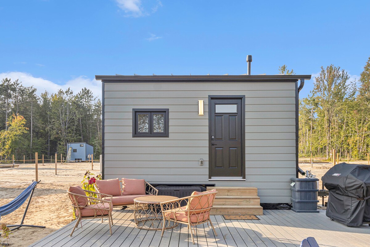 Welcome to the "Coffee Bean Nook," a quaint tiny home tucked away in the peaceful Hammond Hills of Ontario. This cozy retreat is a tribute to the simple joys of fresh coffee, comforting reads, and the embrace of nature. As you step into this humble abode, the comforting aroma of freshly brewed coffee greets you, inviting a sense of calm and homeliness.