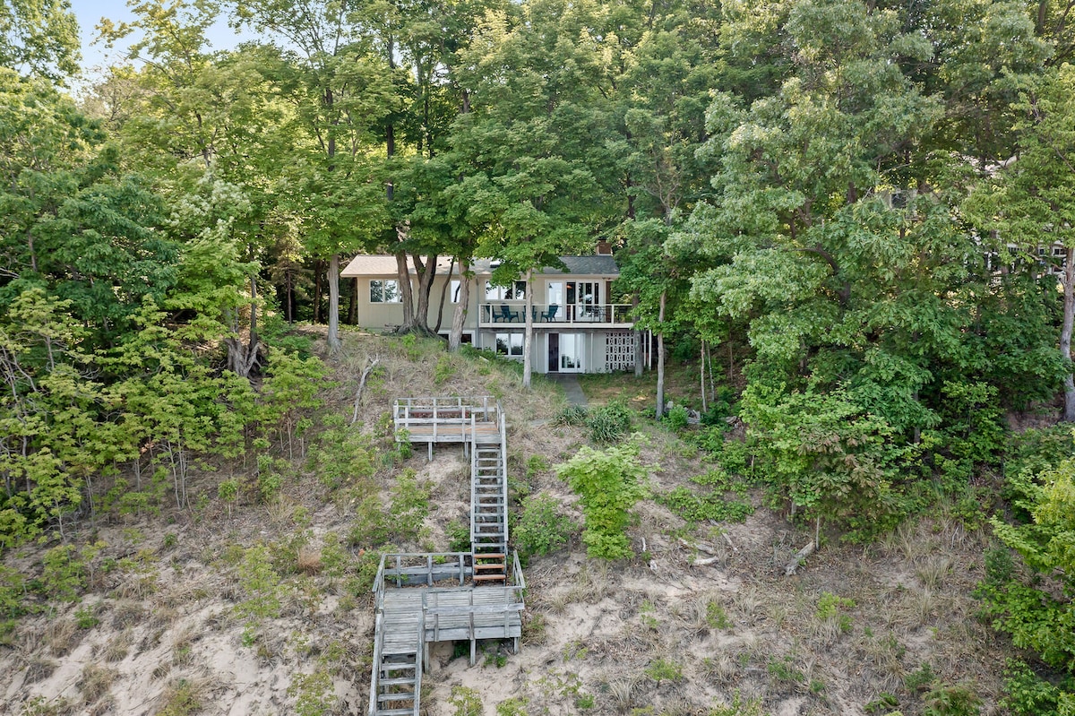UPDATES for Spring 26' HOT TUB, Addtl Queen BED/BASEMENT THEATRE-WILL SLEEP 10! - Steps from the Dunes & Private beach -Hear Lake MI waves from the Hot Tub & Fire Pit -Beach towels, toys, bikes, & Wagon -Premium Mattresses all beds -Luxury Linens - Upscale Furnishings -Fully-equipped kitchen -Weber Gas Grill Want ultimate relaxation during your stay? -Personal Chef via salt smoke brine -Massages -Yoga under the mature trees & Lake MI breezes Let us know what we can set up for you!