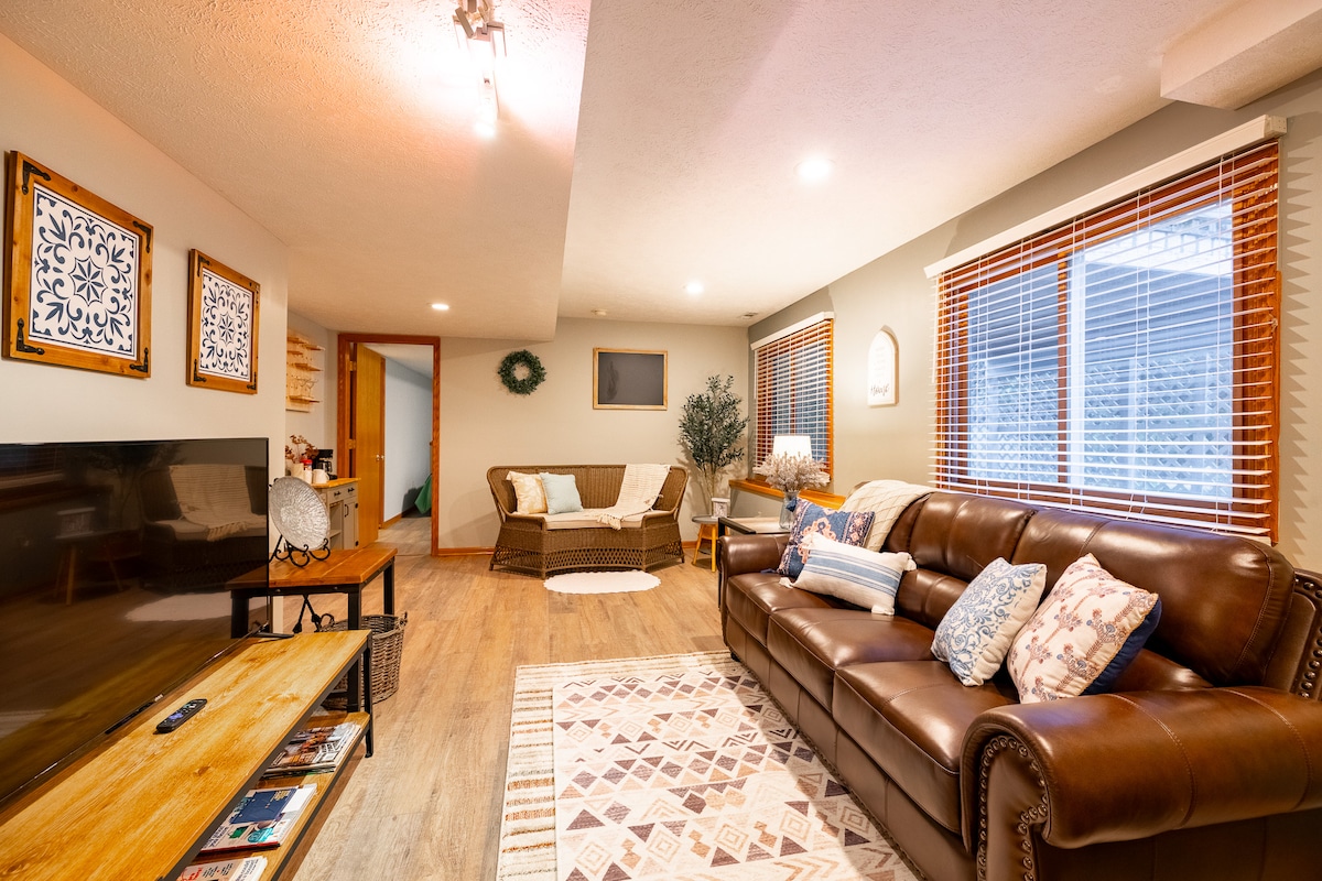 Wonderful location near Holland, Grand Rapids, and Saugatuck. Free onsite parking for one vehicle (nearby public carpool lot also), WiFi, private entrance and space. Nearby trails and parks to explore, museums, restaurants, shopping and beaches all within 20-30 min. drive from our home. Full kitchen (pans, dishes, oven/stove, fridge, coffee/tea bar) and living area, two bedrooms with queen size beds, futon, bathroom, and a separate private entrance for you (lower level- one flight of steps).