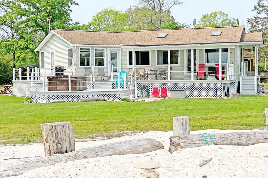 Bring the whole family to this great place with lots of room for fun. This Waterfront 6 bed home with beach and hot tub (April-Oct) is the perfect place for your next get-a-way. Swim, fish, bike, kayak, there is plenty to do in this area. Or just decide to stay in and play a board game (provided) or a yard game like yardzee, ladder golf or corn hole (also provided). We tried to think of everything that you might need on you lake vacation and provide to you. Lots of outside seating. (seasonal)