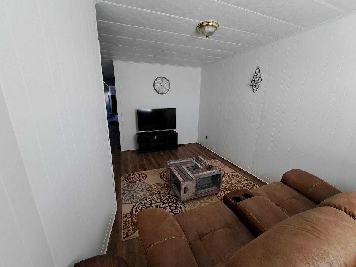 Stay in a historic building that was converted into cozy apartments. This recently remodeled apartment is perfect for traveling professionals. One bedroom has a full size bed along with an office space. There's a queen sized bed in the primary bedroom. There's a large television in the living room and another television in the primary bedroom. This apartment also has private access to the large backyard.