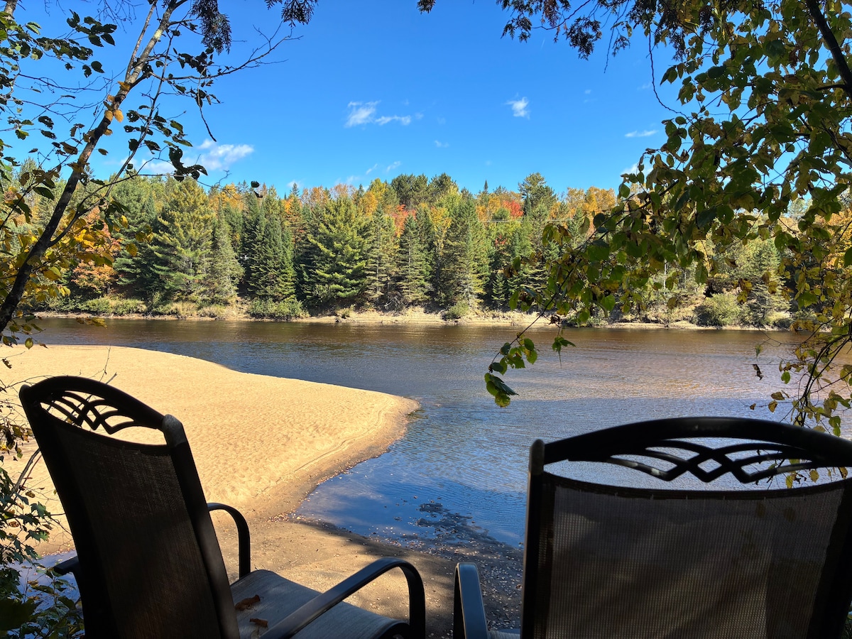 Surrounded by towering white pines & mature oaks, this property is a nature lovers dream. The bunkie is rustic, clean, cozy with views of the Ottawa River & our stone & log cottage. Kitchen is fully equipped with fridge, freezer, coffee maker, toaster, kettle & one burner induction stovetop. Nearby, cycling, walking trails, horseback riding, fishing & world class whitewater rafting. Enjoy peaceful waterfront, dock & sandy beach. Guests have personal fire pit outdoor shower, hot tub & BBQ