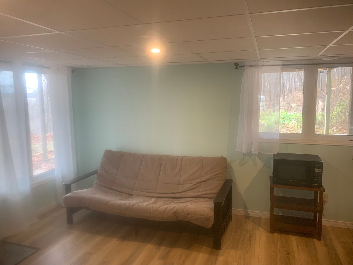 Unplug, unwind, and settle into forest comfort. Tucked away in the serene woods of Arden, this private retreat offers you the best of both worlds: a cozy, fully-equipped room (complete with kitchen and bathroom) and access to our Mongolian yurt. Take a short walk, or an even shorter drive! To the beautiful and aptly named Big Clear Lake, perfect for a peaceful morning paddle or sunset swim. Whether you're here to recharge, explore, or just breathe, this is your quiet corner of the woods.
