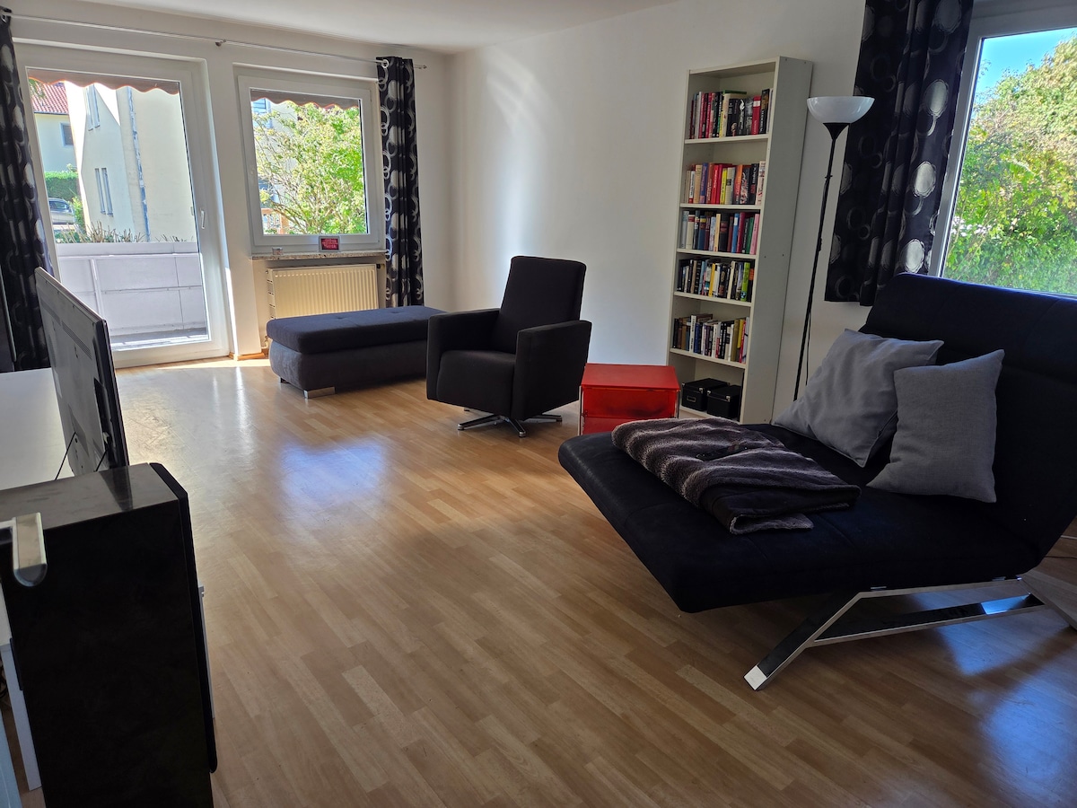 Ruhige, helle, modern und hochwertig eingerichtete 2-Zimmer-Wohnung (65qm) mit grossem Balkon. Von der Wohnung ist die Autobahn A94, die Flughafentangente sowie die S-Bahn schnell zu erreichen. Die geschmackvoll eingerichtete Wohnung verfügt über eine komplett eingerichtete Küche mit Spülmaschine und Waschmaschine. Das große Bad mit Eckbadewanne und Fenster ist sehr geräumig und hell. Die Couch kann zum Bett ausgezogen werden. Wlan wird kostenlos zur Verfügung gestellt.