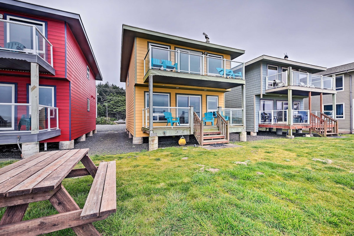 One level Oceanfront bungalow with spectacular views from the wall of double slider doors. Enjoy the ocean sights and sounds from this updated 2 bedroom, 1 bath home. Wood burning fireplace, washer and dryer and propane BBQ. Pets are welcome with a $50 fee and prior approval. We are a fully licensed rental and in compliance with local regulations. Nightly rate includes the 12% Lincoln County lodging tax. Airbnb collects the 2% state lodging tax
