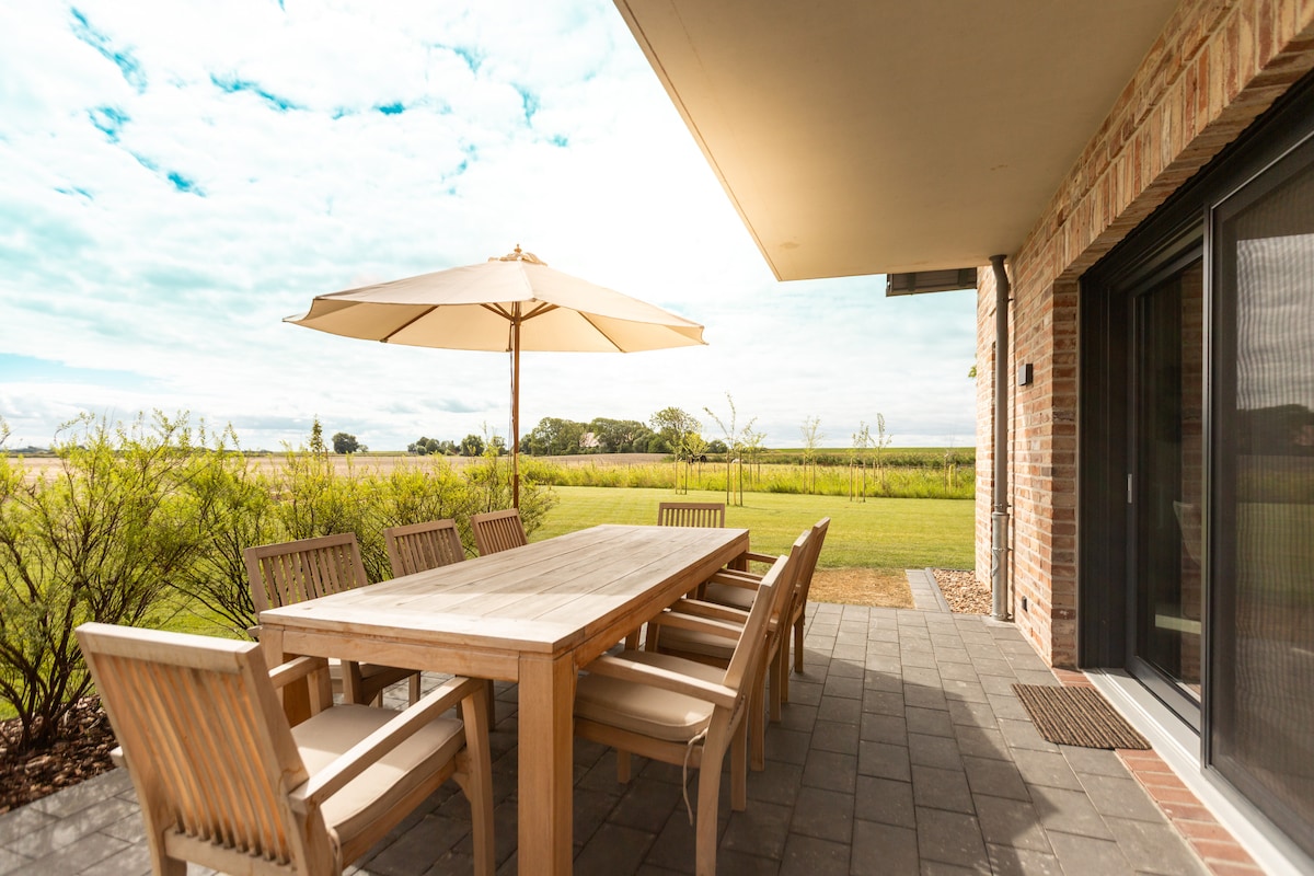 After several family vacations and celebrations with three young children, and in light of the ongoing climate change, we decided to create a sustainable accommodation for active people, especially those with children! Otterndorf: This green seaside town has a lot to offer. From our house with two separate apartments, you can see the giant containers passing by, about 1km away along the dike. In an idyllic and very quiet location, the garden overlooks a horse meadow!