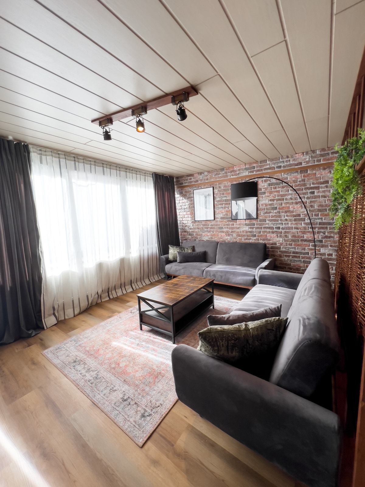 Moderne und gemütliche Wohnung mit Backsteinwand und Garten in Ottobeuren Übernachten Sie in unserer stilvollen und komfortablen Wohnung mit einem gemütlichen Sofa, einer Backsteinwand und einem großen Fenster. Genießen Sie unseren geräumigen Garten mit Terrasse, Grill und einem atemberaubenden Blick auf die Felder und den Wald. Erkunden Sie die charmante Stadt Ottobeuren und ihre berühmte Abtei, oder besuchen Sie die nahe gelegenen Sehenswürdigkeiten, wie Parks, Sternwarten und Golfplätze.