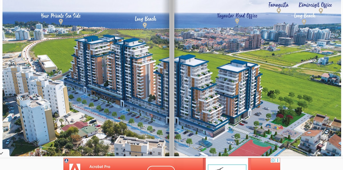 Enjoy the experience at this lovely two bedroom flat at best location of Famagusta (Gazimagusa District). This is a new built modern flat in a residence complex with balcony where you can sit and enjoy wonderful views of the Varosha Ghost town. All the space is fully air conditioned. 5 minutes walk to beautiful sandy beaches & unique Ghost Town Varosha (Kapalı Maraş). Restaurants and bars are in 4 minutes, ancient Famagusta Old Town in 10 minutes walking distance.