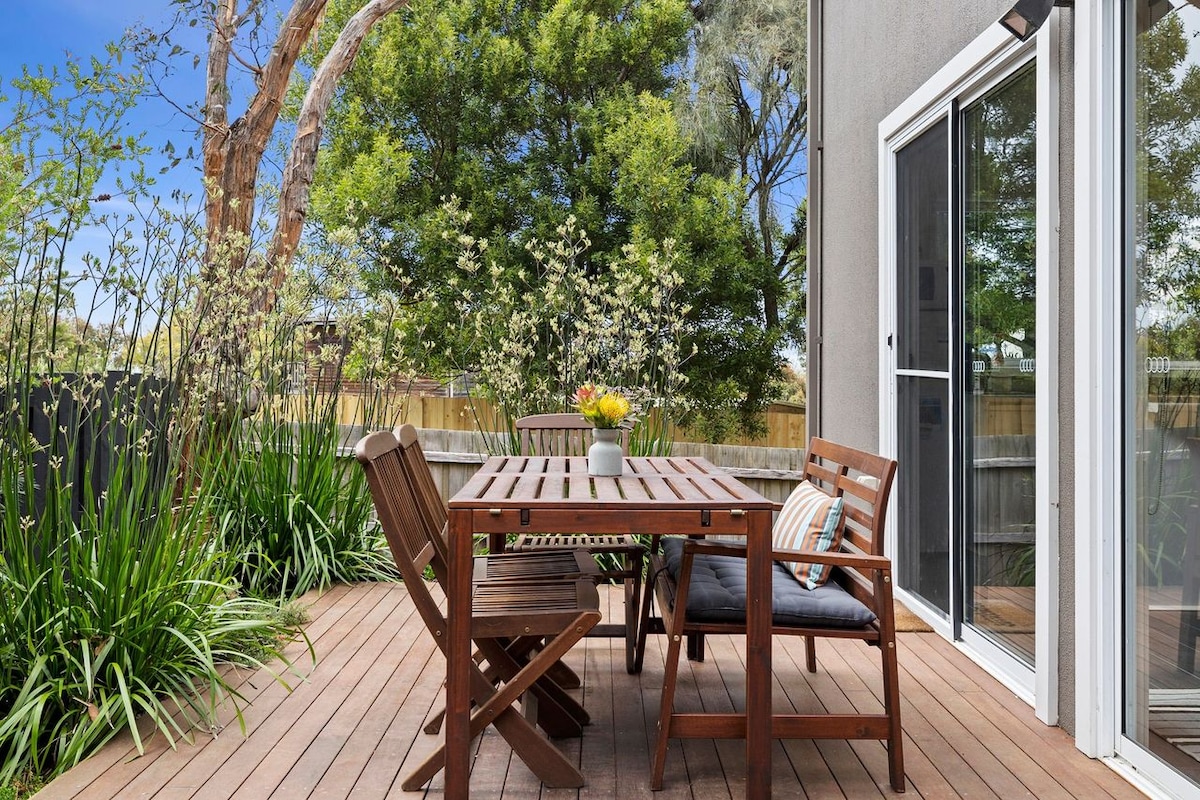 Elegant & stylish beachy villas 100 metres from main Apollo Bay beach and 5 minutes walk from the heart of town. Quiet and very private location for those seeking serenity and a stunning & spacious garden setting brimming with stunning bird life. Wake early to the sound of the crashing waves and be at the beach in a moment to watch the stunning sunrise!