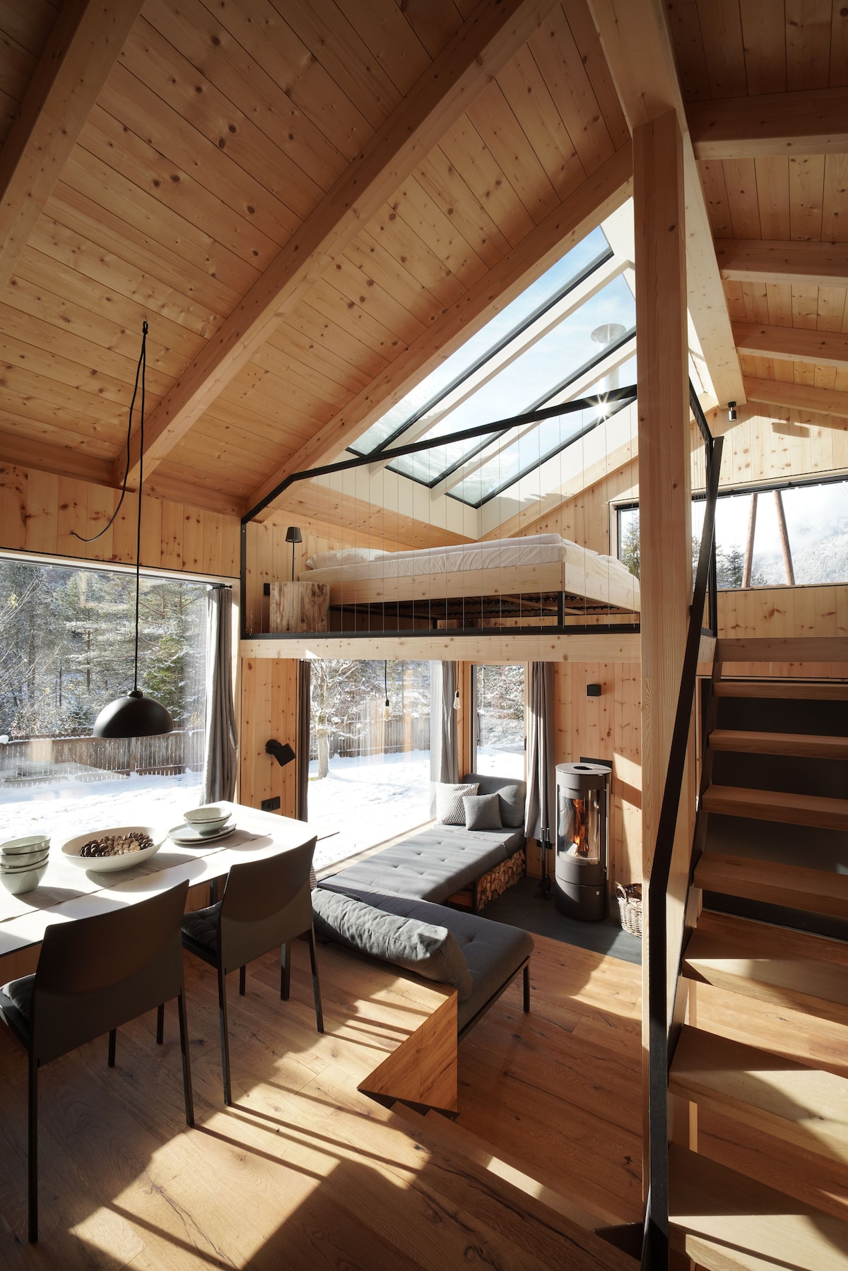Architecture meets nature: Enjoy a handcrafted design concept with a panoramic sauna and river views. Floor-to-ceiling windows and a skylight above the bed let you sleep beneath the stars. Whether breakfast on the sun terrace or a dip in the Isar – time slows down here. Arrive, breathe, and feel at home.