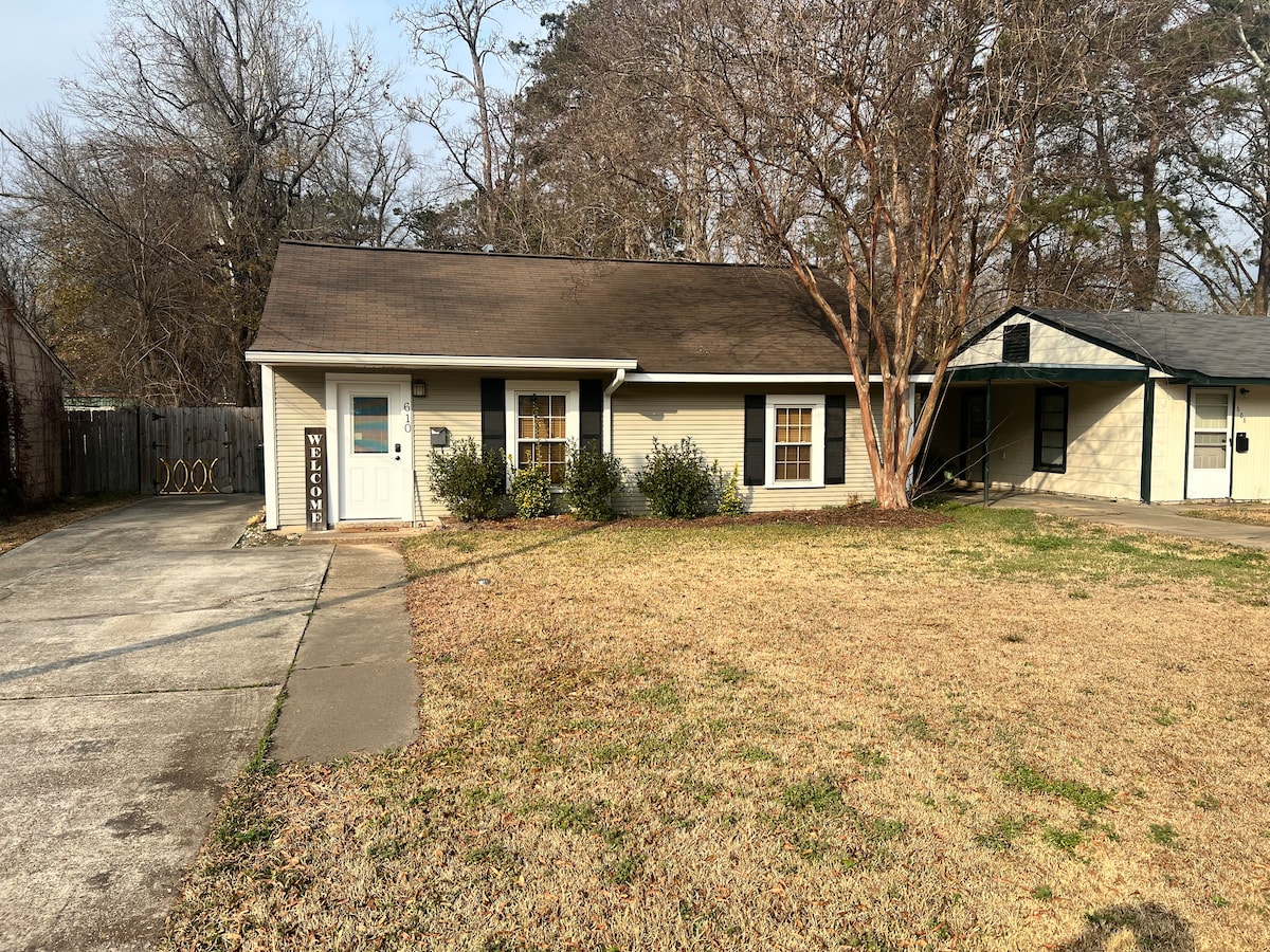 Your family will be close to everything when you stay at this centrally-located home near I-20, Ike Expo, WM Sports Complex and restaurants. Whether you are here for work, sports, Duck Dynasty or the rodeo this location has everything you need to feel like you are at home. This clean home sleeps up to 6 with free WiFi, 2 full bath, 3 queen beds and nice backyard . You can eat out or prepare a home cooked meal. This home is located in a safe, quiet, and well lit area.