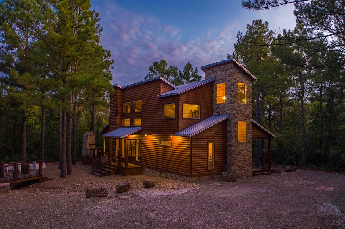 Come relax, unplug and immerse yourself in nature. Enjoy our wonderful view of Lake O' the Pines from this stylish cabin set up on the hill. The two level front porch with views of the lake, woods, sunsets, and wildlife is the perfect spot to unwind. Near Jefferson Tx and Caddo Lake. *read listing fully before booking* There is no wifi and no microwave. Only guests who will respect my beloved home please. No lake access.