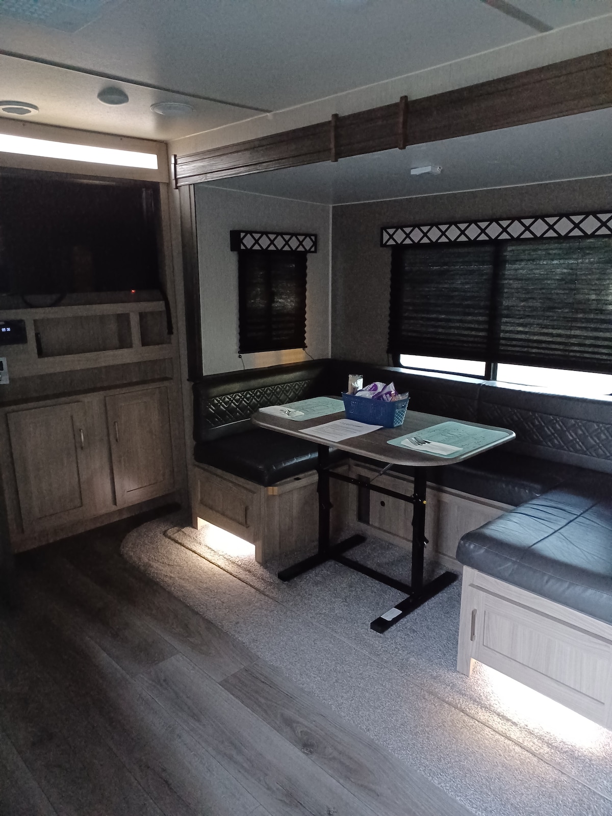 Luxe RV features a queen bed and two full bunks, along with a full bathroom complete with a shower. There is a heated and cooled reclining couch, fully equipped kitchen, including a coffee maker. Linens and towels are included for your convenience. Check-in begins at 3pm. Check-out must be completed by 11 am. Sleeping Arrangements: 1 private bedroom with a queen bed 2 bunk beds located in the living area