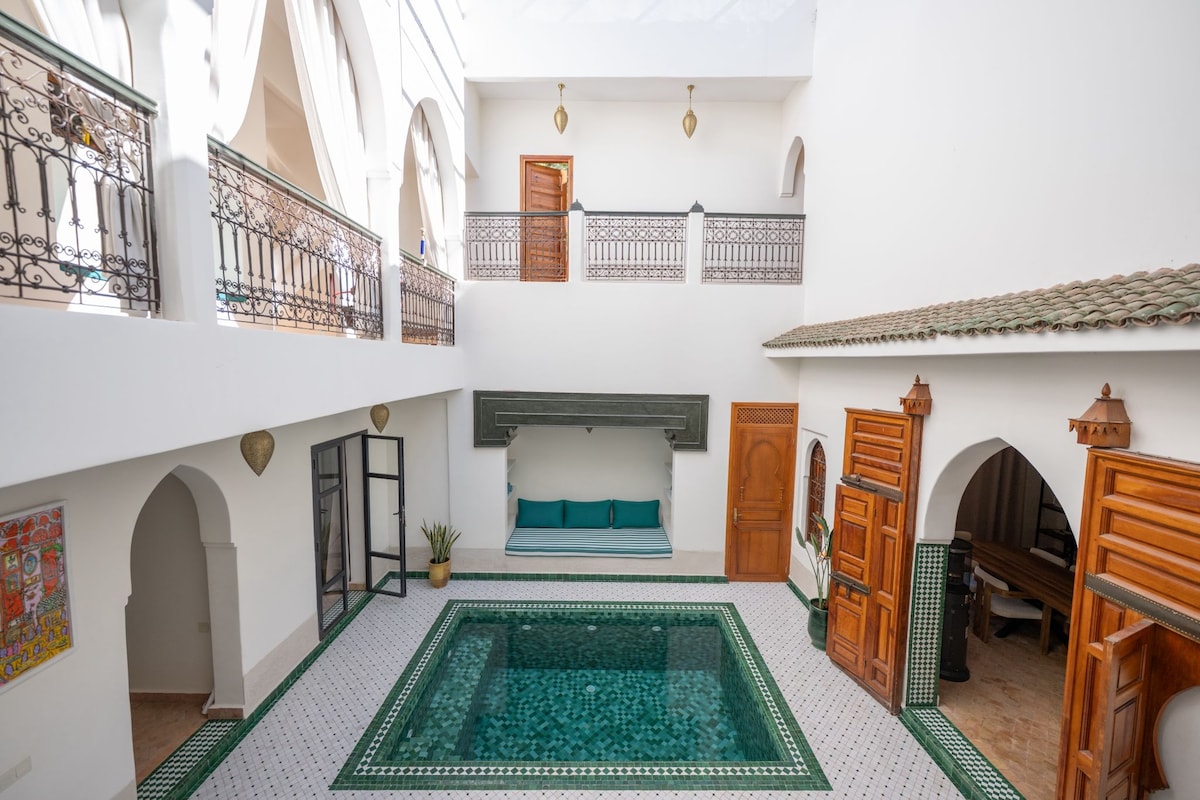 豪华传统庭院-距离Jamaa el-Fna广场2分钟-恒温游泳池