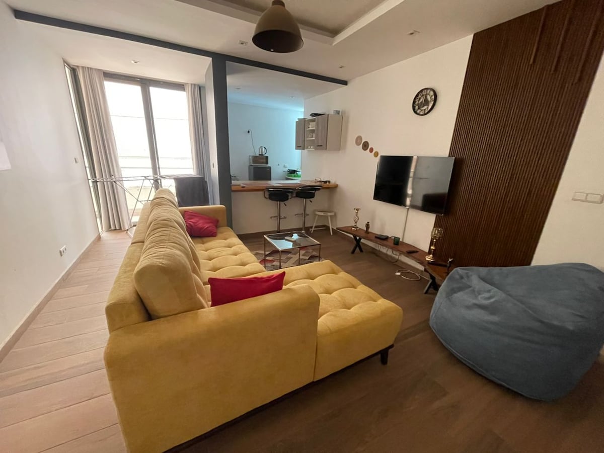 75 sqm Apartment with one separate bedroom with its bathroom. Fully furnished open kitchen on the living room which opens onto a balcony full of flowers. The building is located 500 meters from the main Virage beach The bedroom and living room are air conditioned and furnished in a very trendy style. Smart Led TV, wifi and CanalSat are available. The residence has his own parking, video surveillance and security is provided 24 hours a day.