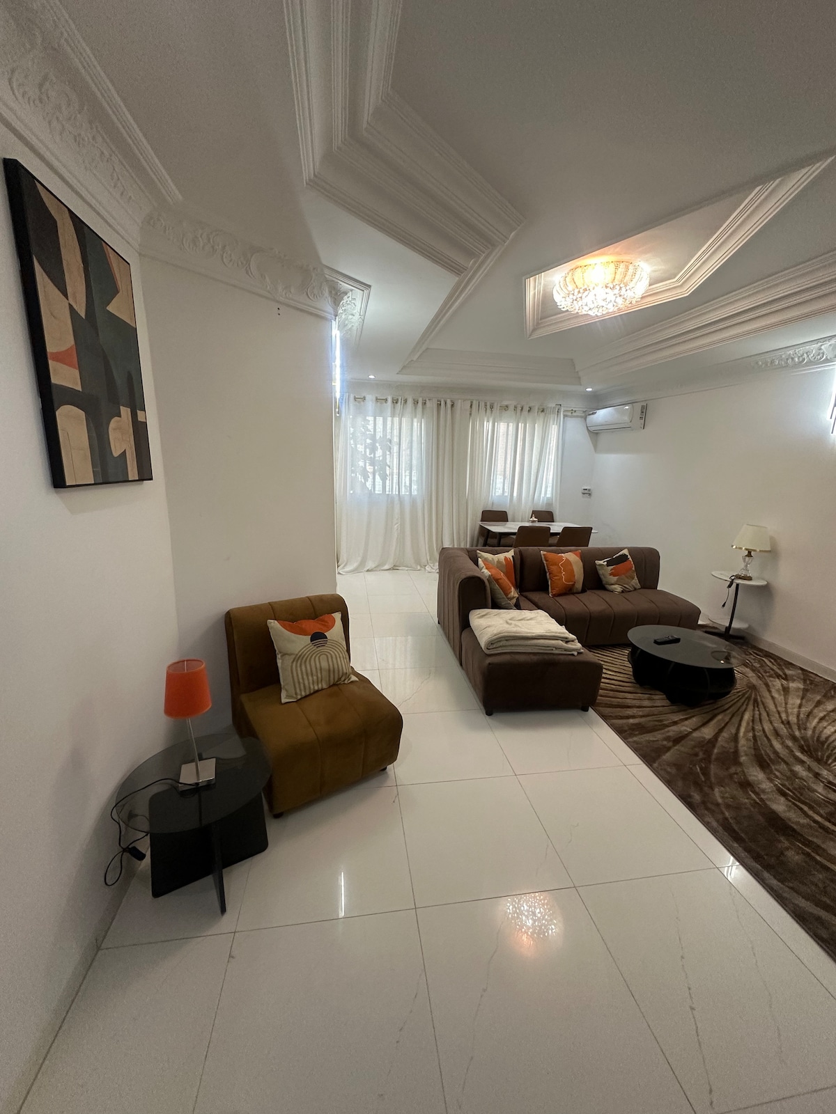 Welcome to your stylish, bright and breezy Almadies retreat. A spacious, light-filled 2-bedroom, 3-bathroom apartment designed for comfort, relaxation, and effortless living. Flooded with natural light and cooled by coastal breezes, this modern home offers a warm yet elevated atmosphere with African-inspired artwork, contemporary furnishings, and an inviting open living space perfect for unwinding after a day exploring Dakar. This home offers the perfect balance of style and functionality.