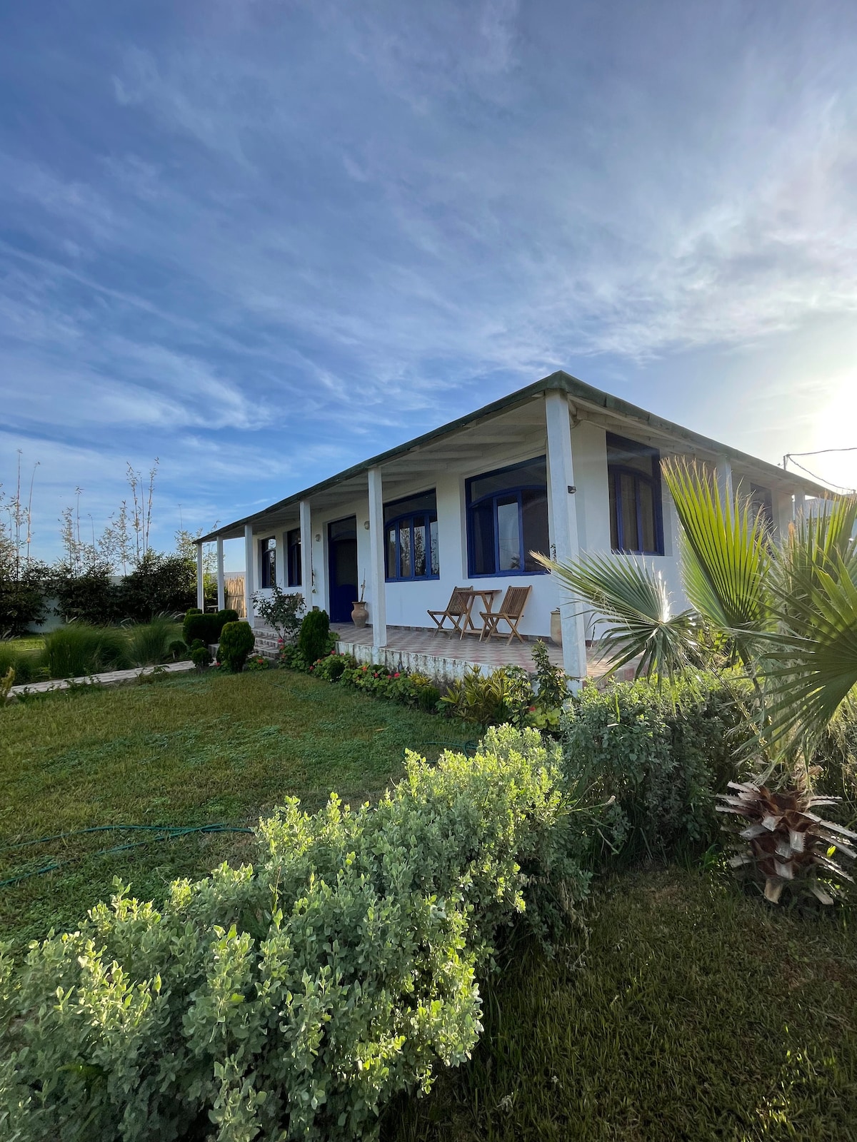 Un oasis de paix et d'élégance au coeur de Oualidia à 1 km de la plage. La maison entièrement rénovée vous offre le calme et la sérénité pour des vacances entre amis, en famille ou en couple. 5 chambres avec terrasses tout confort vous ouvrent leurs portes, décorées dans un style mélangeant l'artisanat marocain et contemporain. Le jardin luxuriant baigné de lumière est propice à la baignade grâce à sa piscine chauffée. Maison Marine c'est aussi son toit terrasse et sa tente marocaine.
