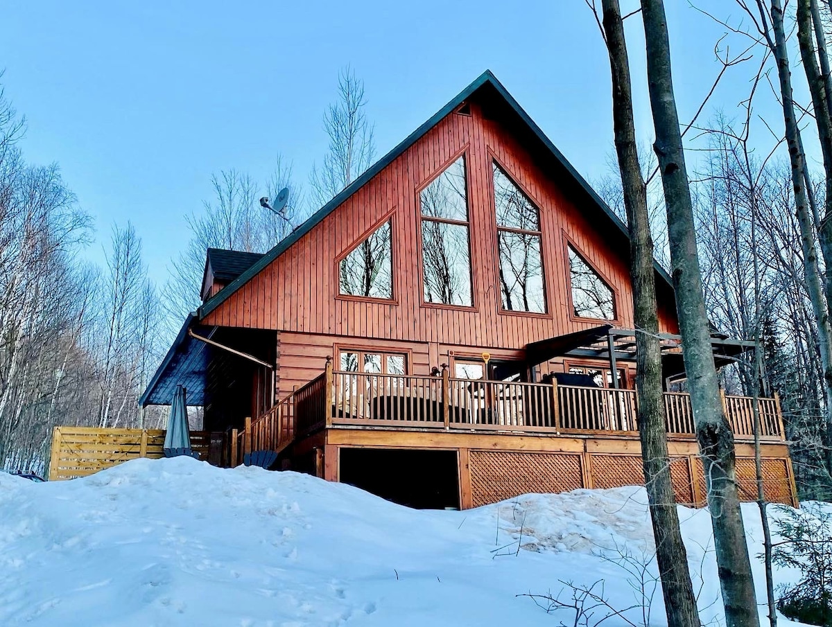 Unique haven of peace with breathtaking views! Located on a huge 100-acre estate with no nearby neighbors! Peace and tranquility guaranteed. Dogs accepted on condition until June 15. Dogs not allowed in high season. Cross-country skiing, snowshoeing and hiking trails on the doorstep. Spa with breathtaking views! In winter, a 4x4 vehicle is required to drive up the road to the chalet. THERE ARE CAMERAS ON THE PROPERTY Dogs welcome before June 15th + fees (no dogs in pick season). CITQ #30336