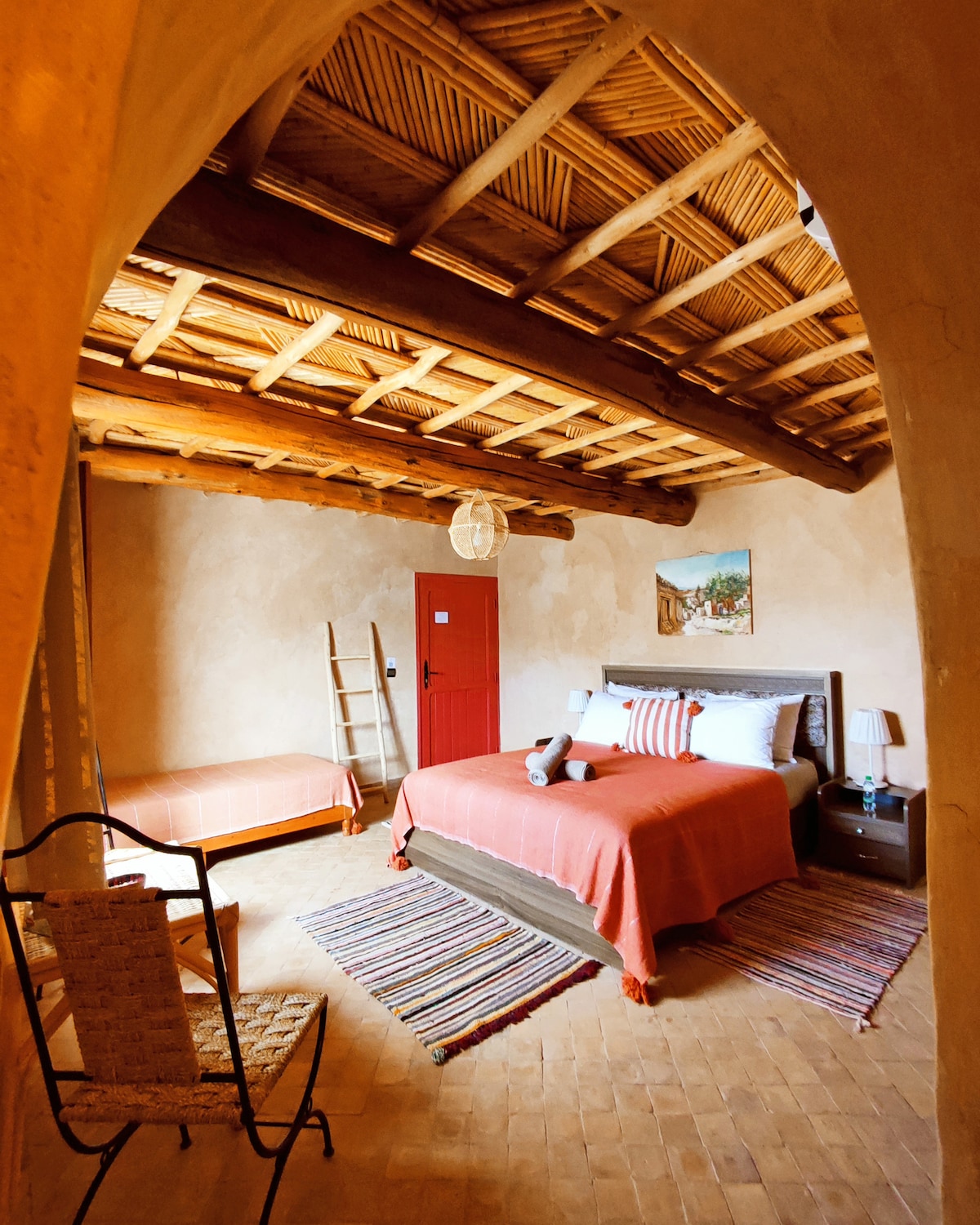 Nous vous proposons de loger dans notre maison au centre d'un petit village typique du haut atlas Marocain, aux portes du désert, Tasselmante. Vous y serez accueillis avec bienveillance par Souhad et Salah, natifs et habitants du village. Nous proposons deux chambres doubles et une chambre triple pour les enfants, toutes équipées de toilettes et salles de bains. Le logement vous est privatisé. La piscine et la WIFI sont à votre disposition. Les petits déjeuners vous seront offerts.