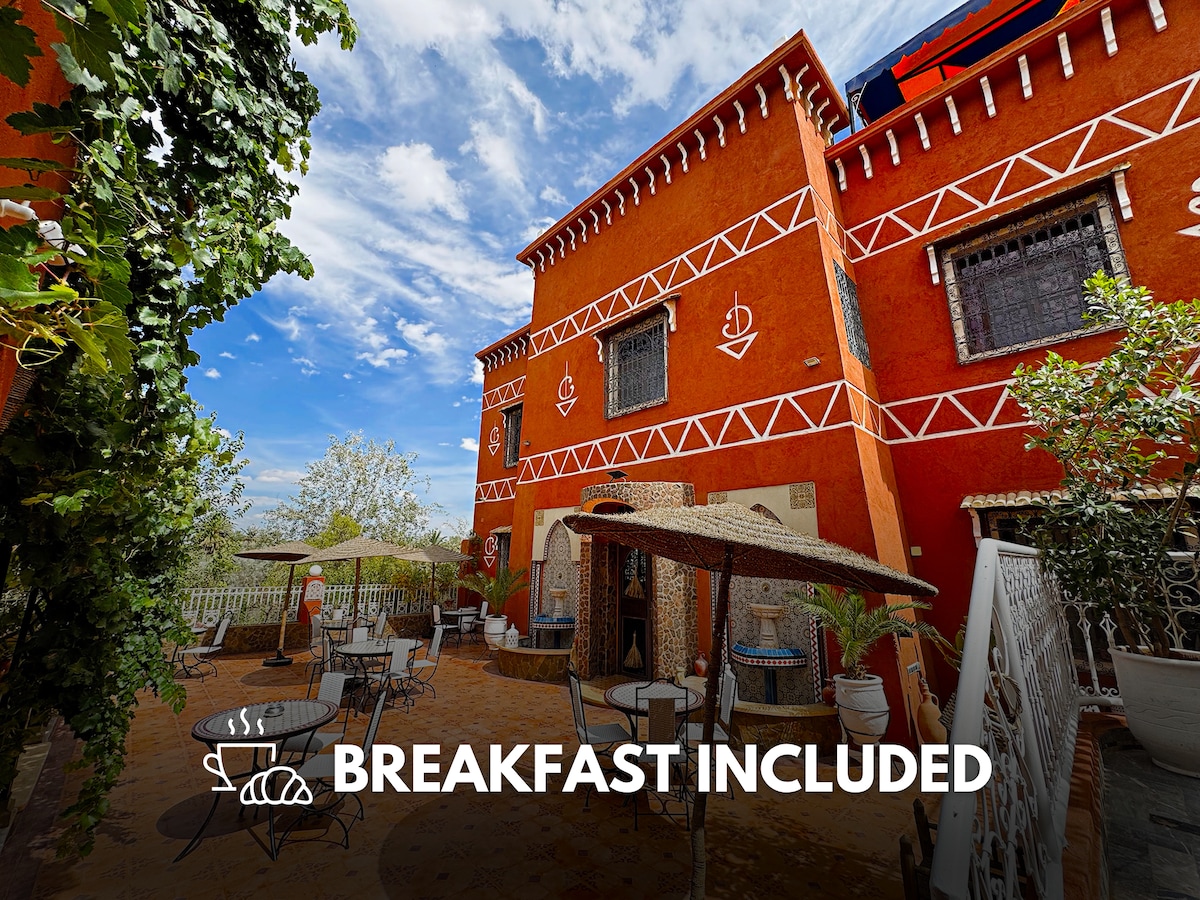 Located in the palm grove of Ouarzazate this small house of Berber style will enchant you for its charm and comfort. Calm, relaxation, meetings with our animals are guaranteed. With swimming pool and garden shared with other travelers. Breakfast included, air conditioning/heating, wifi, terrace and free secure parking. A bedroom with 1 double bed + 3 single beds. A convertible living room with 2 single beds and an equipped kitchenette. Ideal for lovers of nature and authentic.