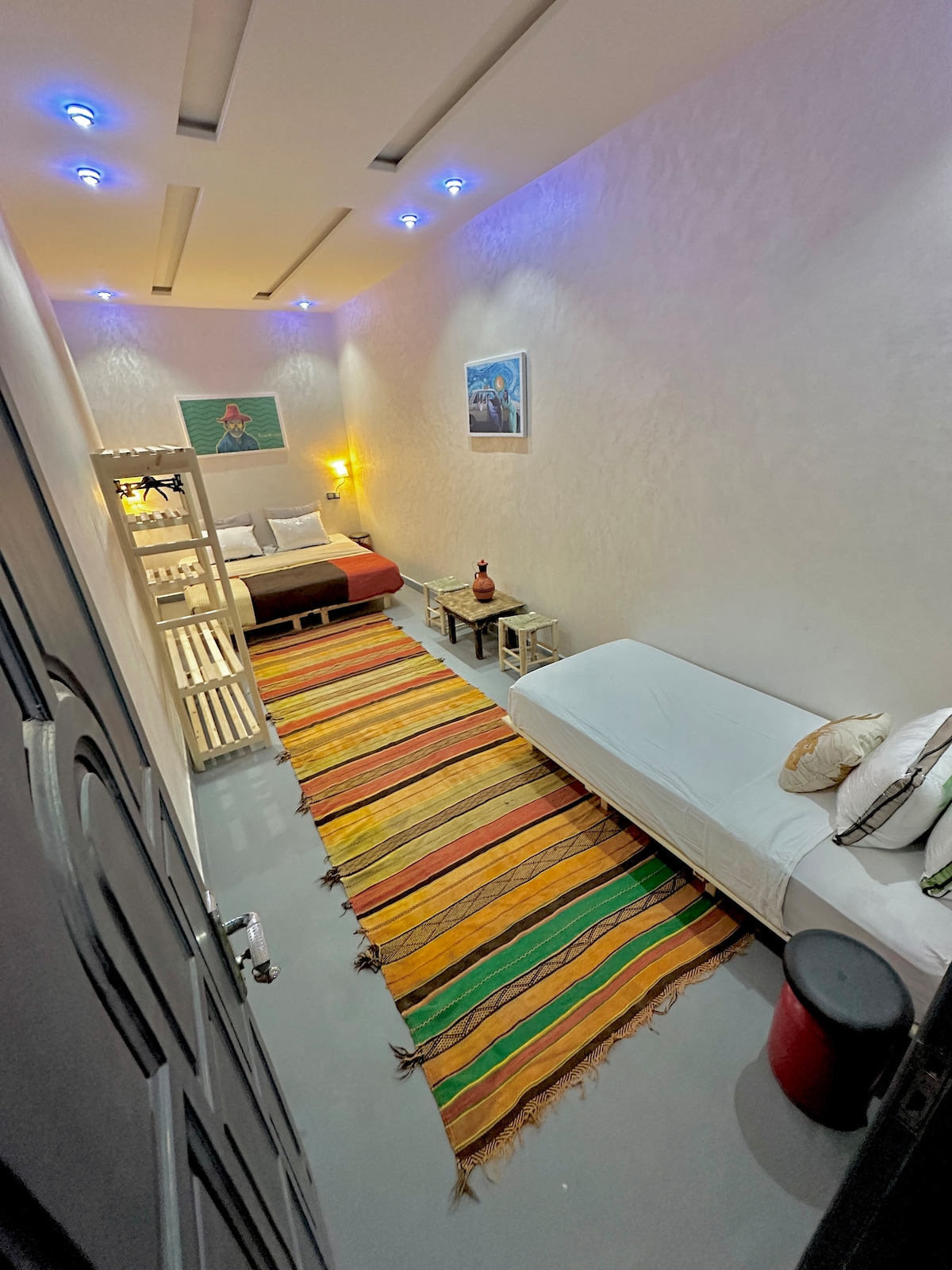 Tigami N-Laman is a cozy, Berber-style guesthouse located in Tarmigt, just 2 km from downtown Ouarzazate. Surrounded by the calm of the desert, it’s the ideal spot for travelers looking to unwind and experience the warmth of southern Moroccan culture. Parking Free parking is available right in front of the house if you're arriving by car. Getting Here Taxis are available anytime from the city center (5 Dh) or from the bus station (8 Dh) to Tarmigt Supermarket, just a short walk from us.