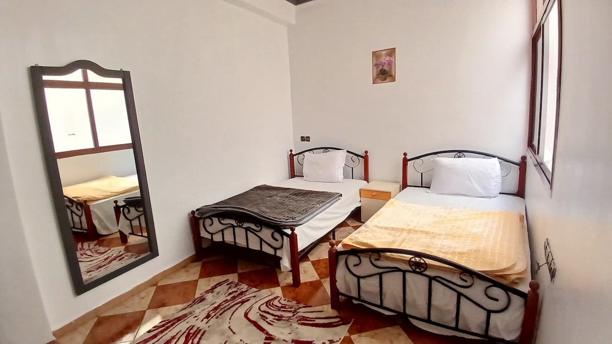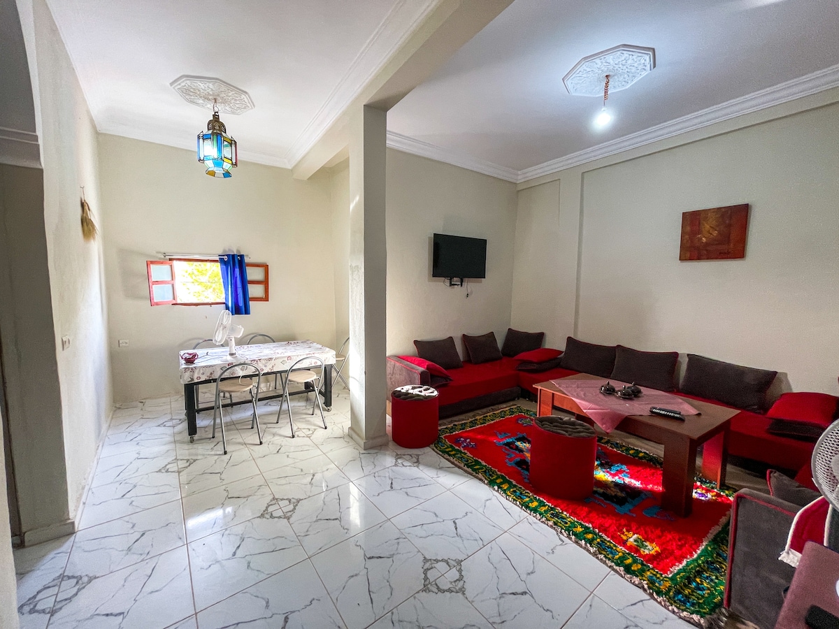 Je vous invite à vivre une expérience unique à ouarzazate, en passant votre séjour dans mon appartement CHARMANT avec ses 2 chambres et 2 salons. En entier, que pour vous! QA: - Clim? Bah Oui bien sûr. - Parking gratuit? Absolument! - Localisation? Une des meilleures, tout ce dont vous avez besoin est à - 5 min - Hospitalité? Ne me lancez même pas! Vous allez adorer. - Calme? Vous allez dormir comme un bébé! La recette complète pour un séjour inoubliable. Qu'attendez vous alors?