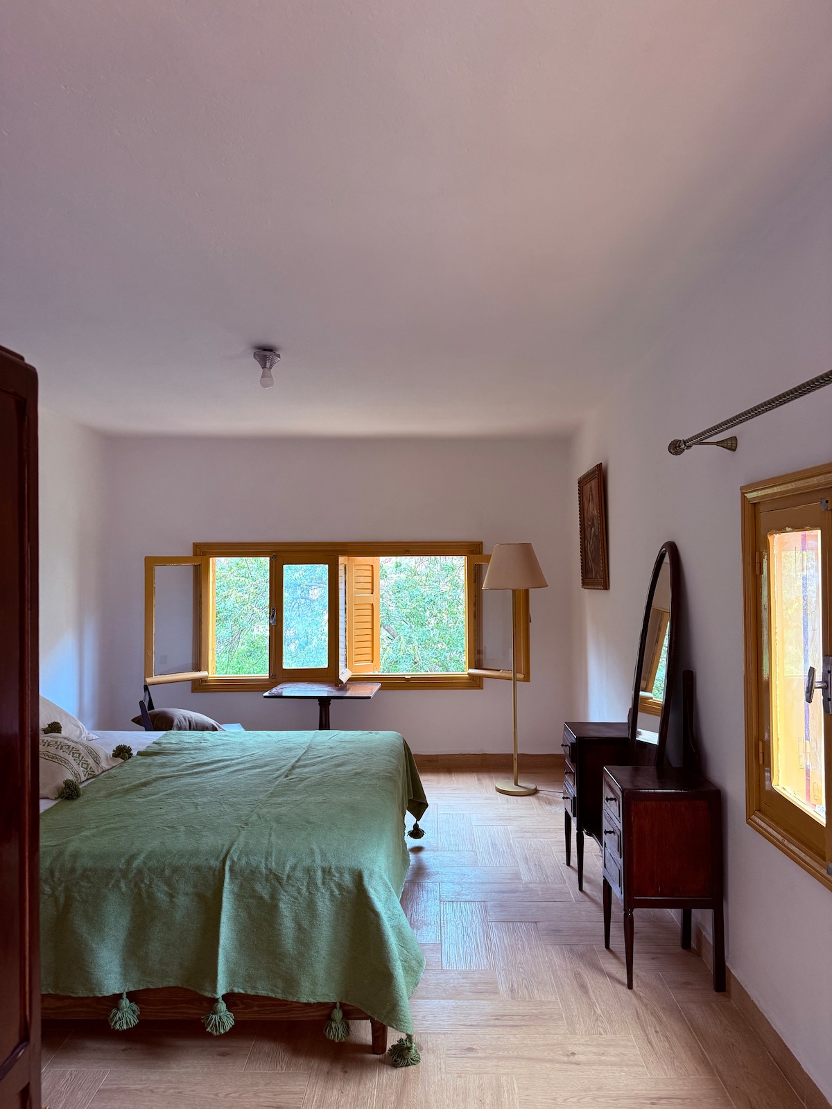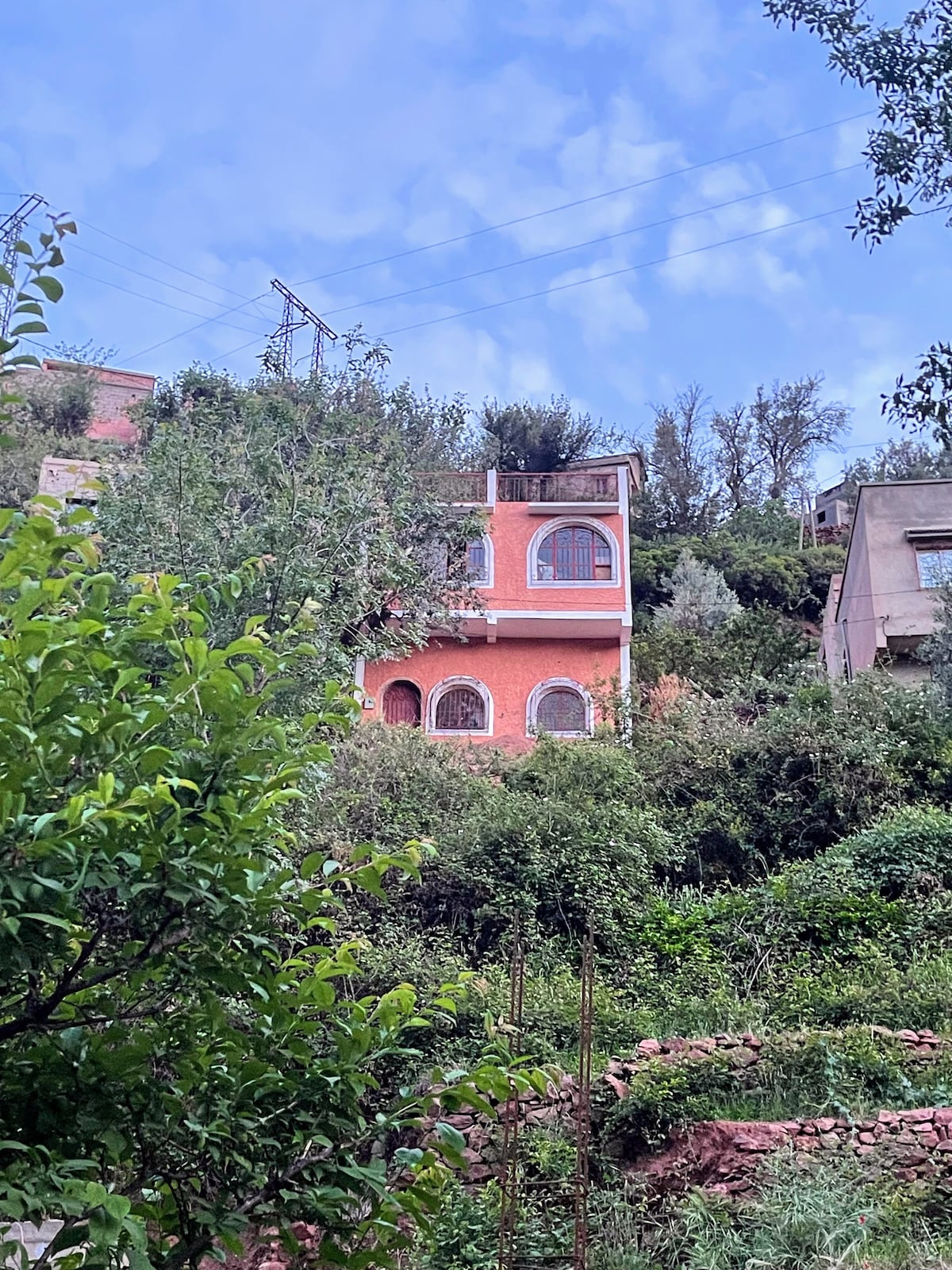 Welcome to your peaceful mountain getaway in the beautiful Ourika Valley, just a short drive from Marrakech. This cozy apartment blends traditional Amazigh charm featuring handcrafted decor and breathtaking views . • Large panoramic windows with mountain and garden views • Traditional Amazigh seating and handmade rugs • A dining area with a rustic touch • A fireplace for cozy evenings 🛏️ The apartment comfortably hosts up to 4 guests and is perfect for couples, families, or friends.