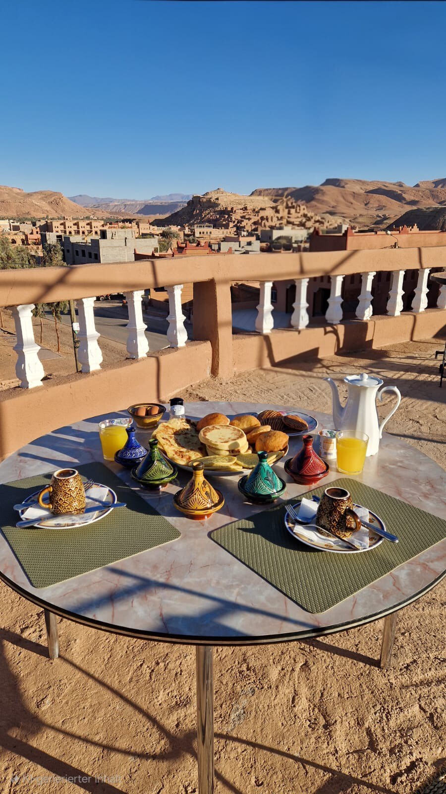 Au pied majestueux des montagnes de l'Atlas, là où les cimes enneigées veillent sur les vallées ocre et les oliviers centenaires, se cache Dar Houda, une maison d'hôtes où l'hospitalité marocaine prend tout son sens. Dès le seuil franchi, un parfun de fleur d'oranger et de menthe fraîche vous enveloppe. La maison baignée de lumière, invite à la détente autour d'un thé servi avec le sourire, tandis que les salons aux tapis berbères et murs en pisé racontent l'histoire du Maroc