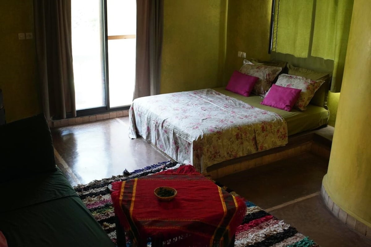 It is a place that won't leave you indifferent, situated in the Ourika valley, at a 2min walk from the river, with a terasse and a rooftop with a view of the mountains. A breakfast is included For transport from and to Marrakech, we can provide transportation, please ask for it