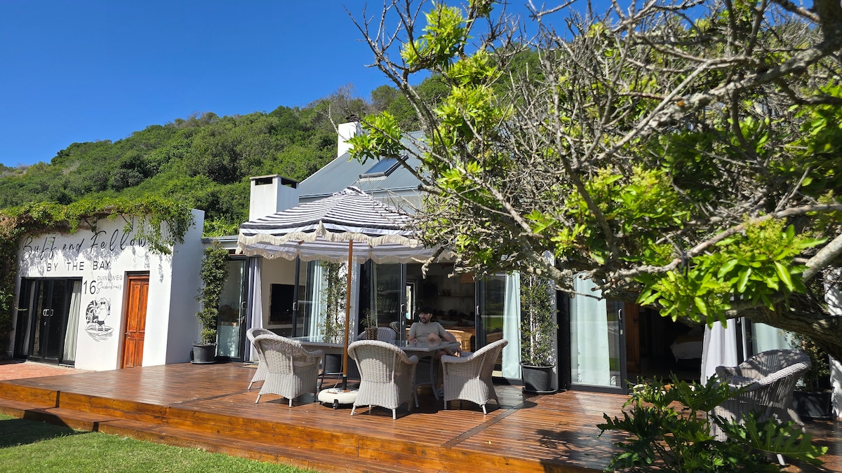 Ideally located modern holiday home on the Garden Route in the serene village of Klein Brak river. A stones throw away from the blue flag beach & lagoon. Ideal for long walks or a dip in the ocean. The shallow lagoon is ideal for kids. Beautiful & spacious en-suite rooms ensure relaxation & privacy for all. Well equipped kitchens & a huge dining area for entertaining with a stunning view. Solar powered, no need to worry about load shedding.
