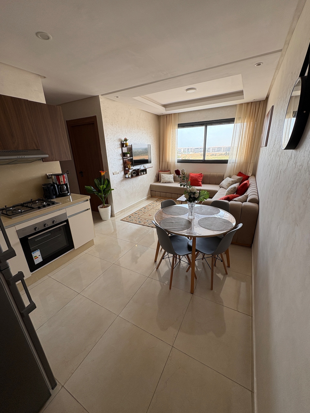 Appartement élégant à 20 min de rabat, au 3ᵉ étage avec ascenseur, offrant tout le confort nécessaire pour un séjour agréable, une escapade détente ou un déplacement professionnel, - Accès plage/piscine pour se rafraîchir les jours ensoleillés - Grande terrasse ouverte avec vitres en accordéon, idéale pour détente, lecture ou petits-déjeuners ensoleillés - Chambre confortable, literie de qualité et rangements pratiques - Cuisine équipée pour cuisiner comme à la maison - Parking sécuriséqa