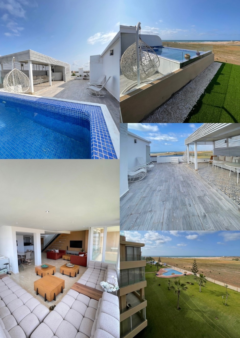 Bienvenue dans notre sublime duplex de 200m2 en bord de mer dans la charmante ville côtière d'Oued Cherrat, idéalement situé entre Casa et Rabat (idéal pour suivre les matchs de la CAN). Dès que vous franchissez la porte, vous serez émerveillés par une vue imprenable sur l’Atlantique. Notre maison, cosy et décorée avec soin, est parfaite pour les familles ou groupes d'amis. Dans une résidence sécurisée 24/24 et avec piscine, notre duplex est idéal pour des vacances en toute tranquillité.