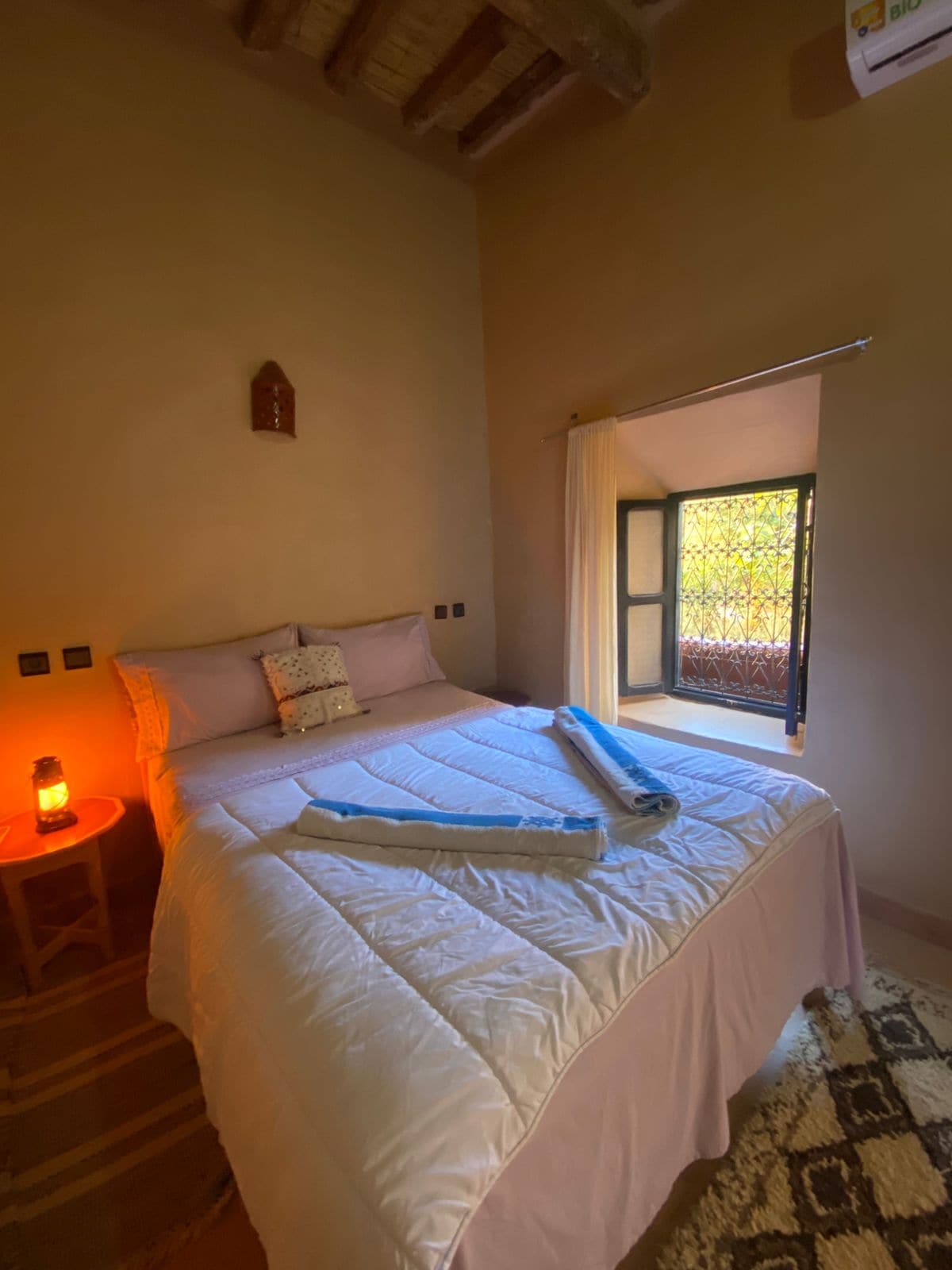 my place is located near the garden and it's has its simplicity. charming.Vous pouvez demander le petit dejeuner . Bienvenus dans mon auberge ancienne complètement rénovée par moi.:des terrasses, 2 chambres avec salle de bain le restaurent ,et la vie calme,tranquille face a la palmeraie et les jardins .C est a 5 mn du souk .Je vous emmenne dans la montagne ,et meme bivouac avec les nomades . je vous attends Brahim