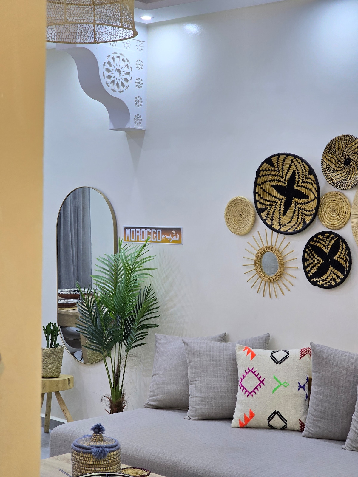 The real Morocco is found in its villages. Our apartment in Tamraght village has a Berber Moroccan style that offers a true local experience. It’s in a quiet area, perfect for relaxing. The apartment has traditional Berber décor, comfy beds, and amazing views of the ocean, mountains, and village from the shared rooftop terrace. You’ll also enjoy fast Wi-Fi and free parking during your stay.