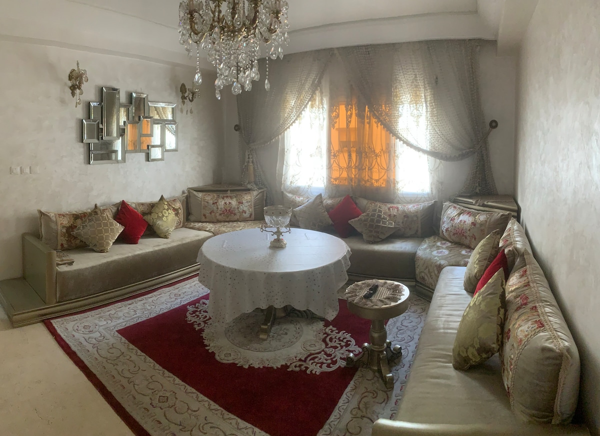 Bienvenue dans notre appartement lumineux et spacieux idéalement situé au rez de chaussée d’un immeuble dans un quartier animé au Cœur d’agadir À quelques pas des meilleures attractions, -restaurants café Et des supérette - transport en commun - Supermarché et pharmacie à proximité, plage à 12 min Idéal pour les couples les familles ou les voyageurs d’affaires ; un petit geste pour vous faire sentir les bienvenus ! Nous offrons une corbeille de fruits frais et des bouteilles d’eau gratuitement
